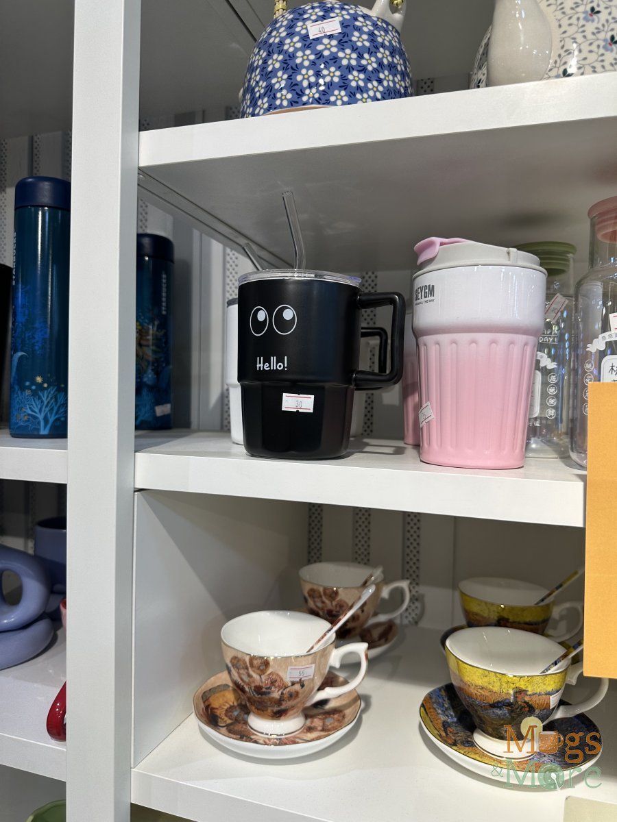 مج هاند ميد برسومات مختلفة مع صحن طويل