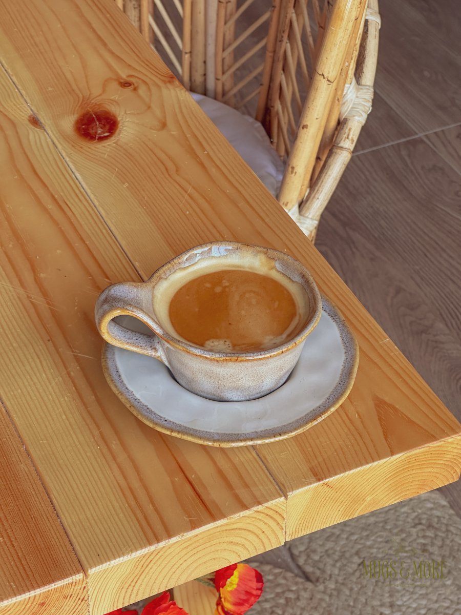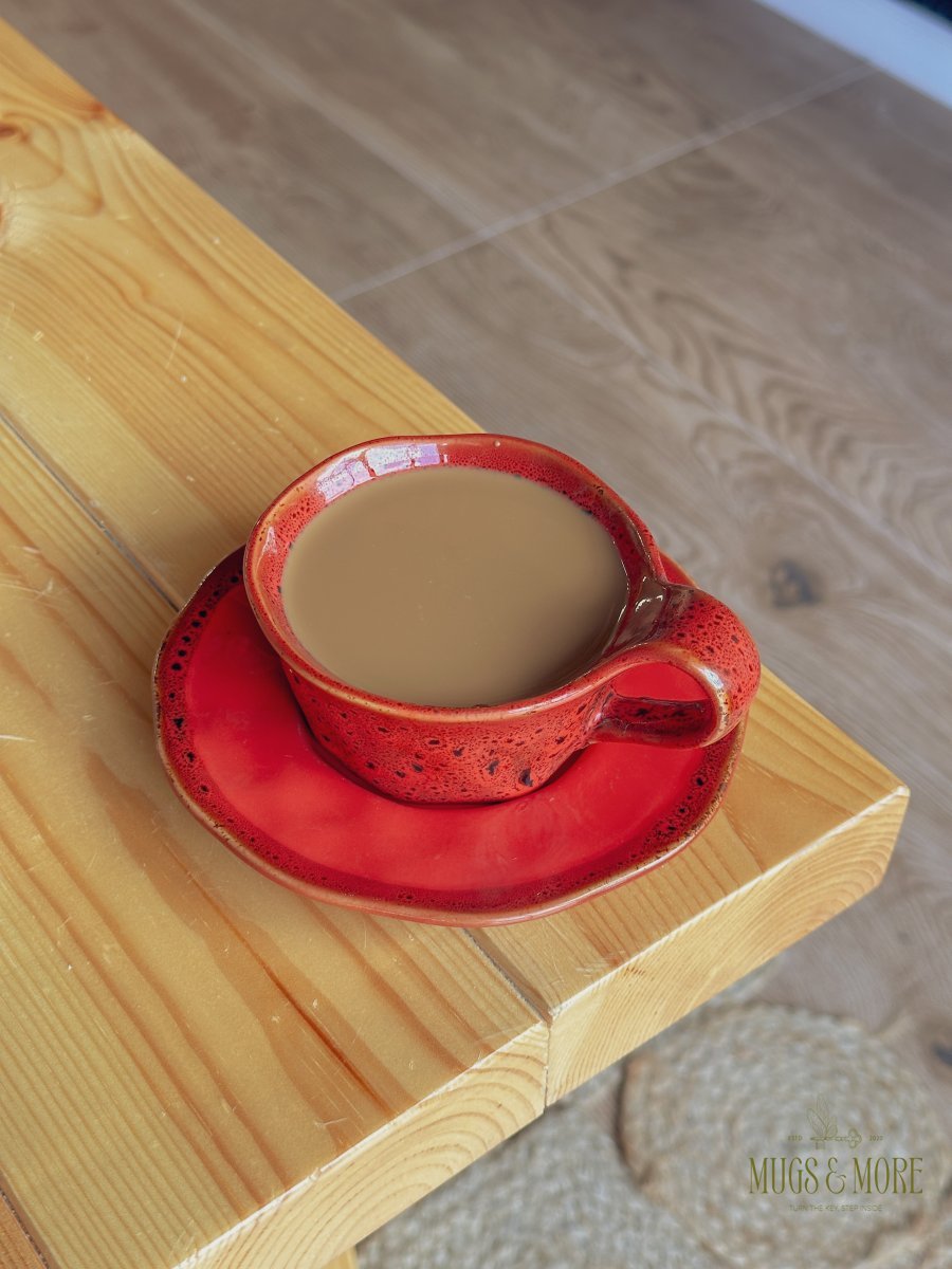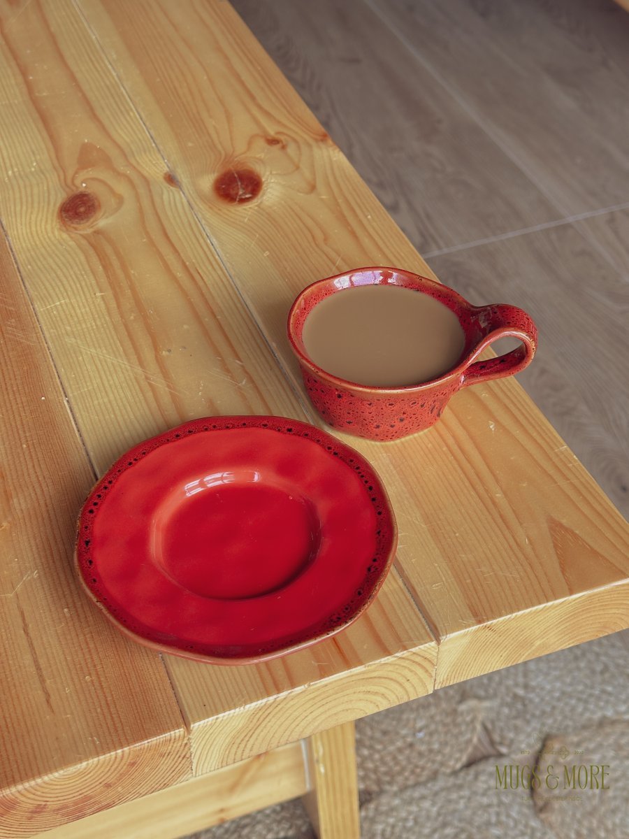 فنجان حجم كابتشينو/ شاي وصحنه فنتج ستايل