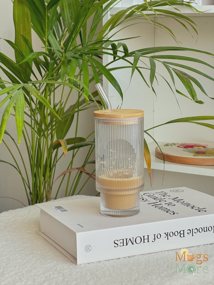 كاسة شفاف محززة مع غطاء وشلمونة