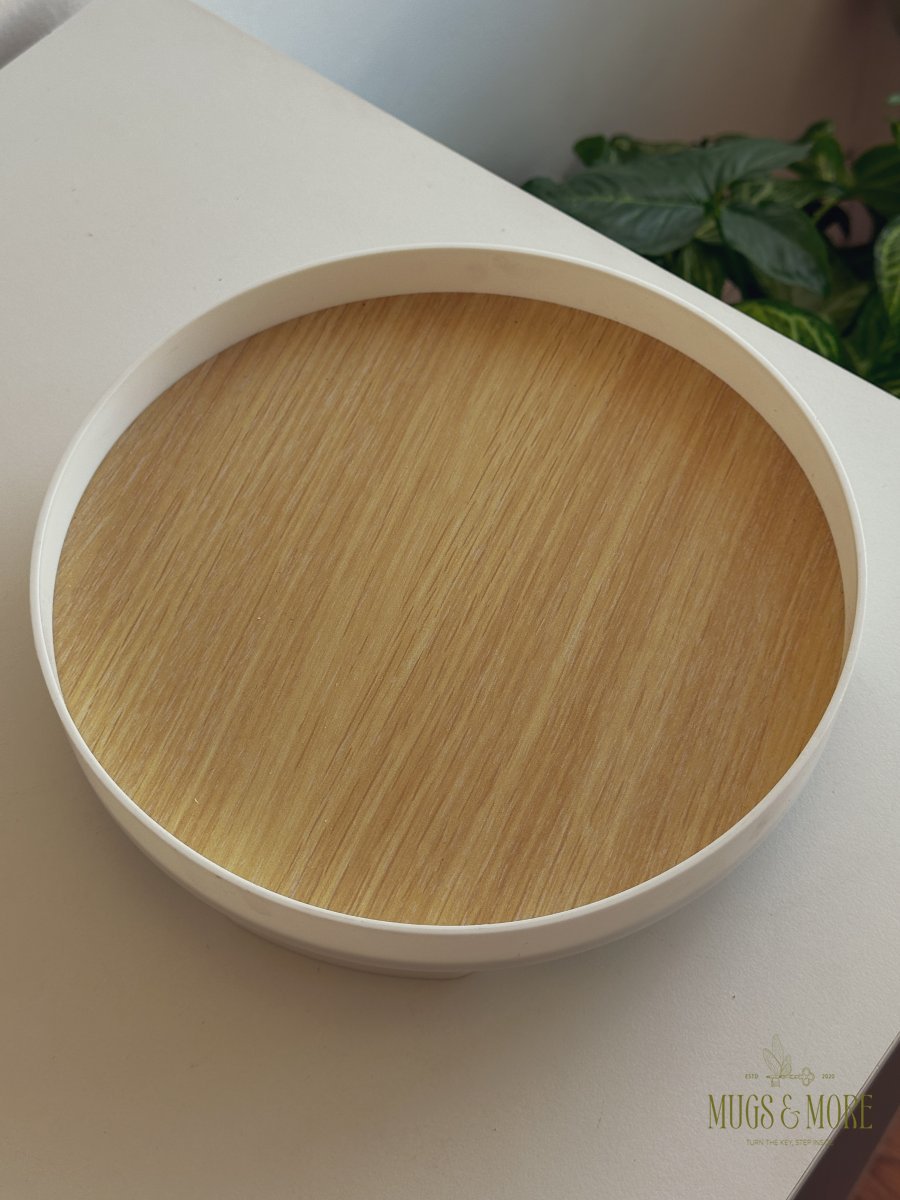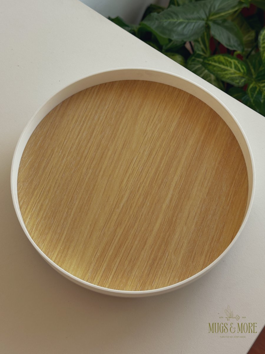 صنية ميلامين مع قاعدة لون خشبي و ابيض متعددة الاستخدام