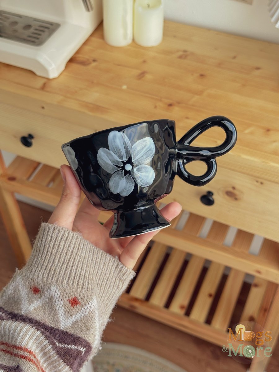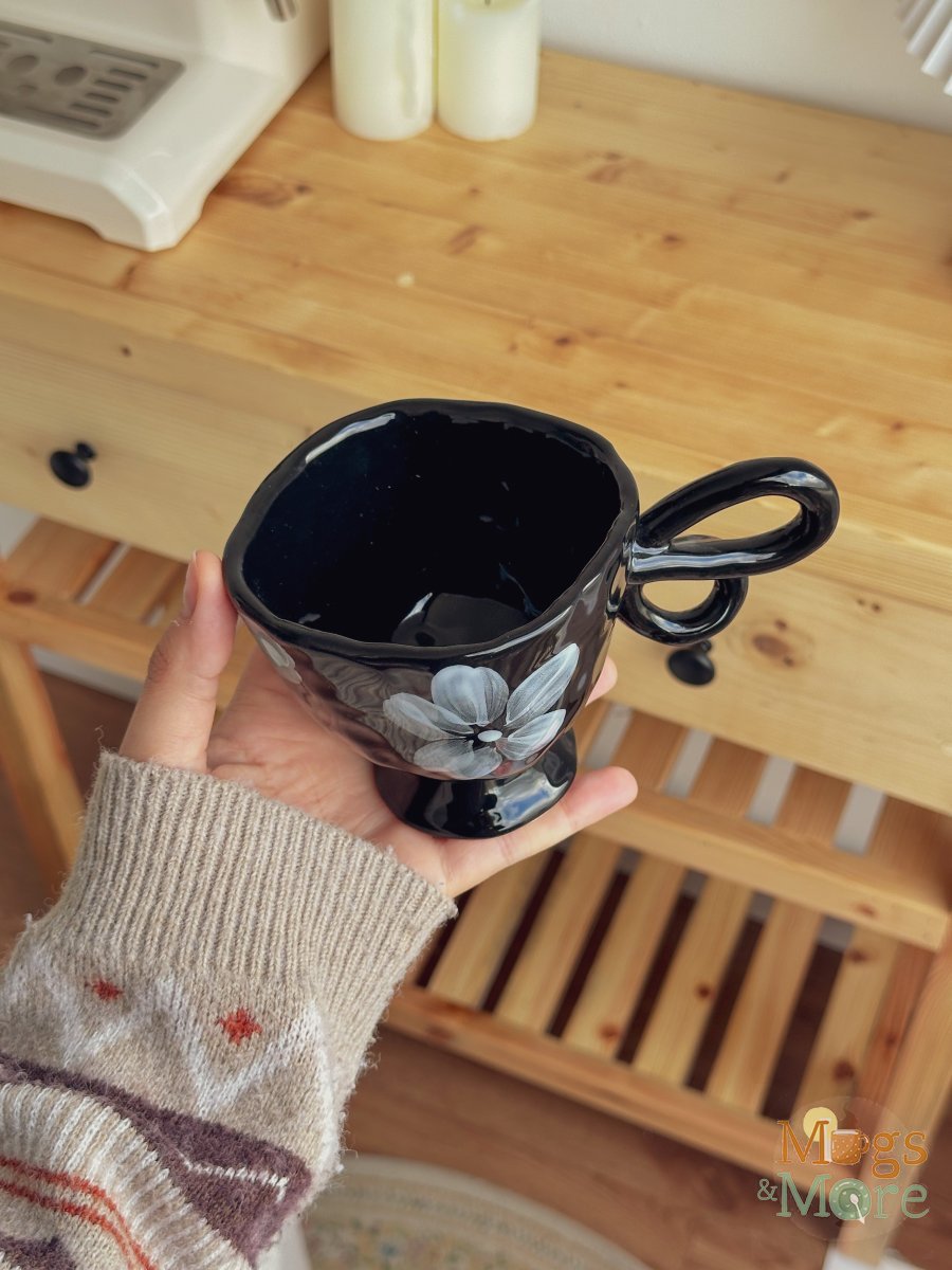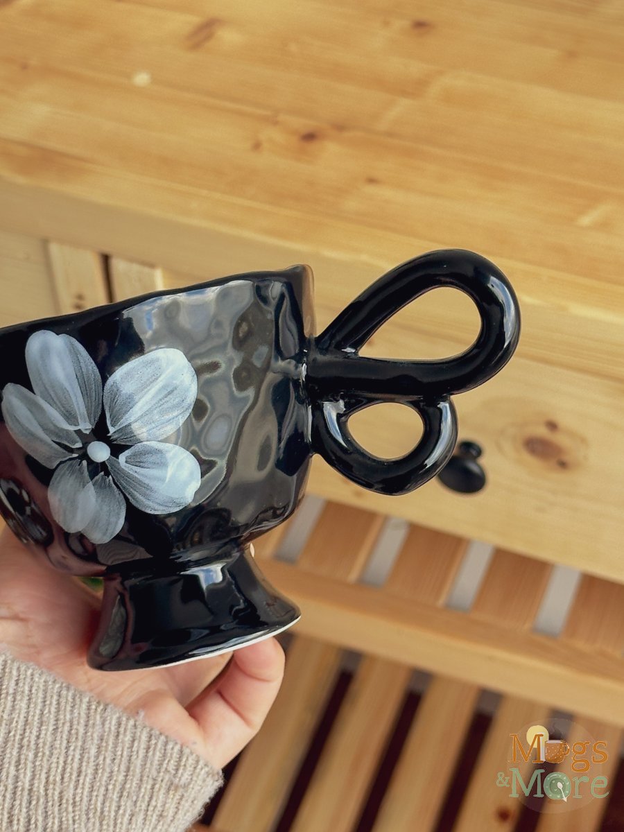 مج اسود مع قاعدة برسمة وردة ويد مميزة