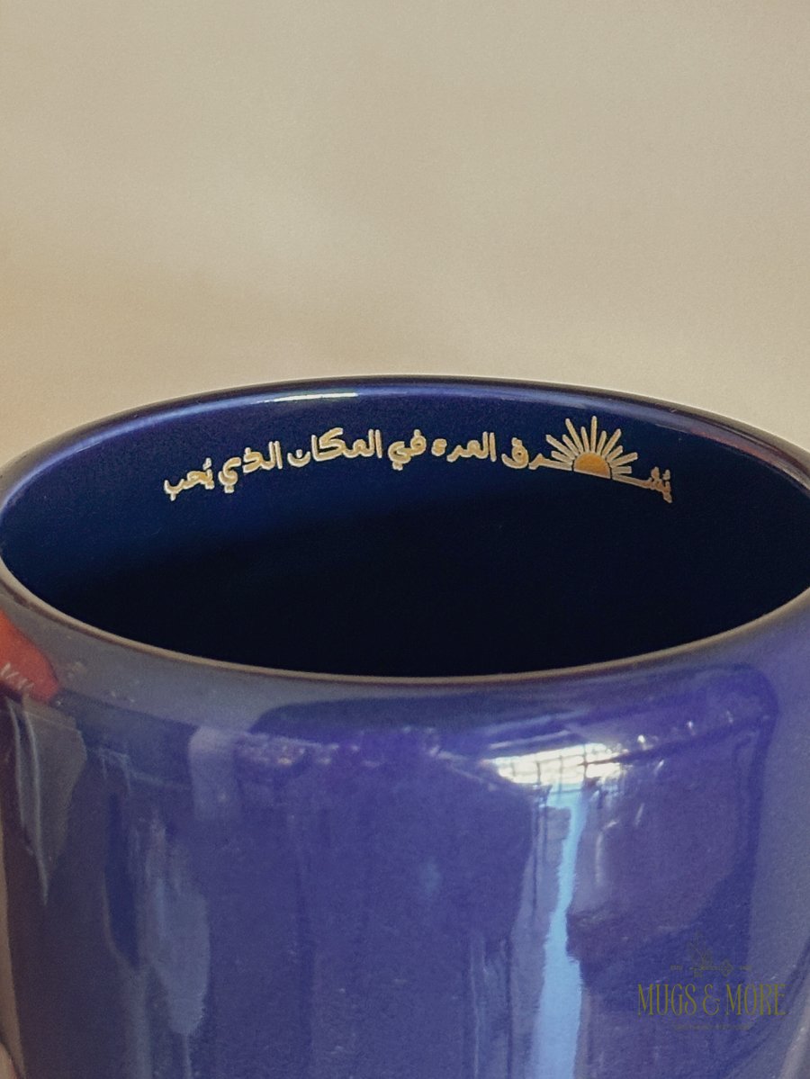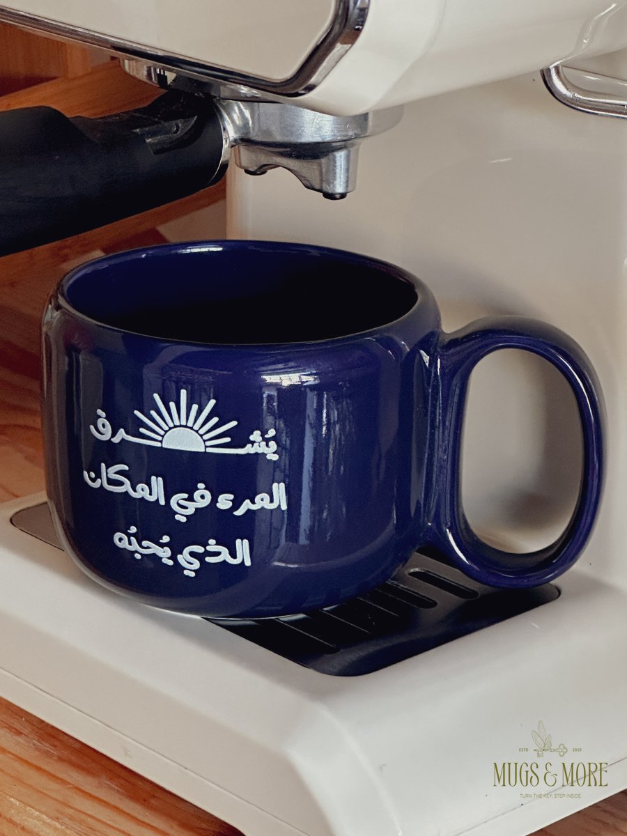 كوب بعبارة "يشرق المرء في المكان الذي يحبه"
