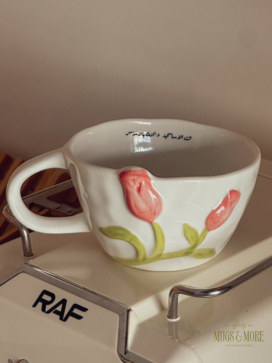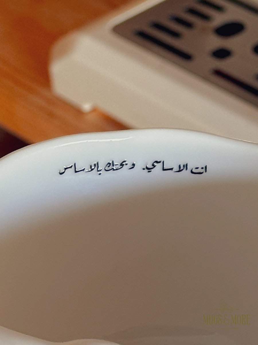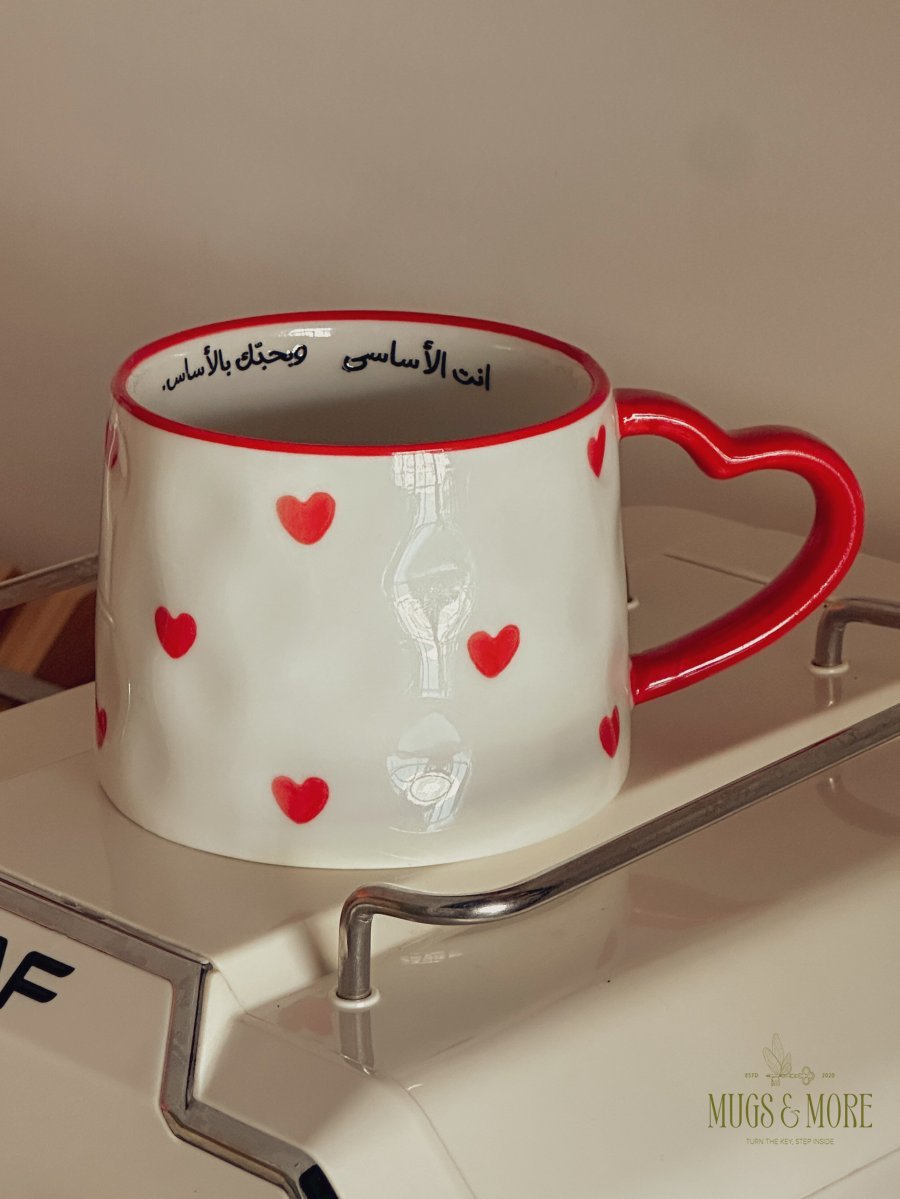 كوب بعبارة "انت الاساسي وبحبك بالاساس"