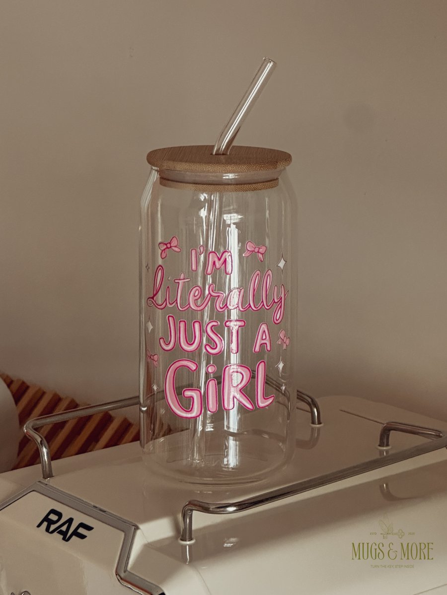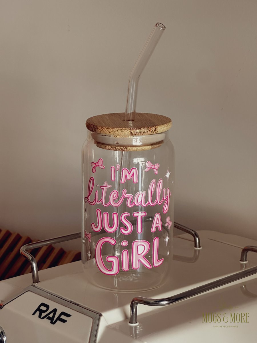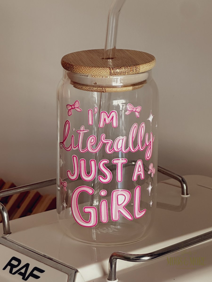 جرة شفافة بغطى خشب وشلمونة "i’m literally just a girl"