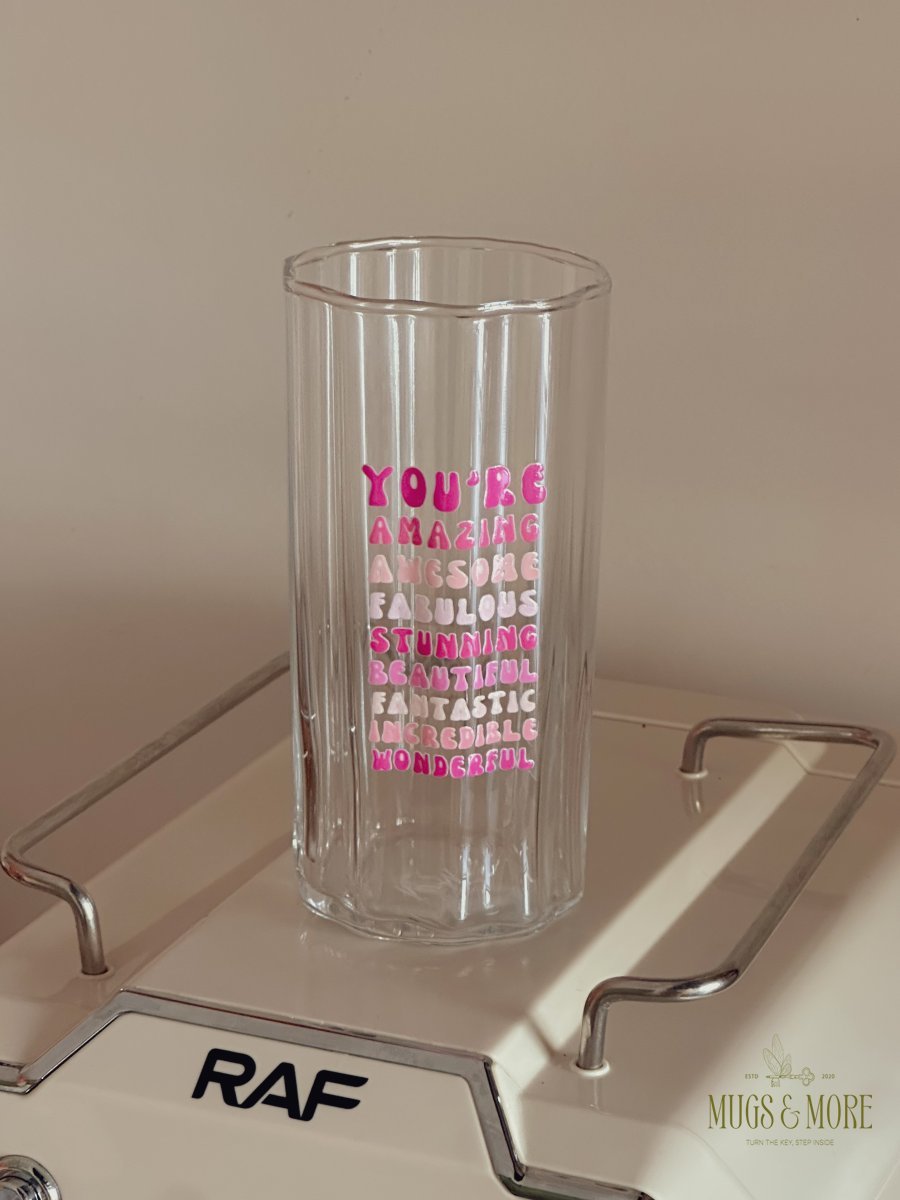 كوب شفاف بعبارة400مل "you are amazing awesome fabulous stunning"