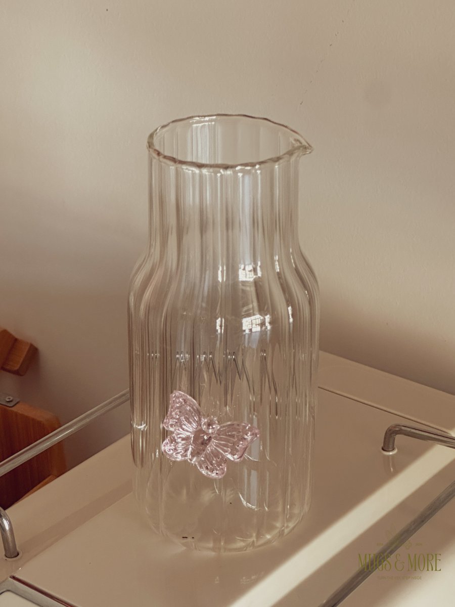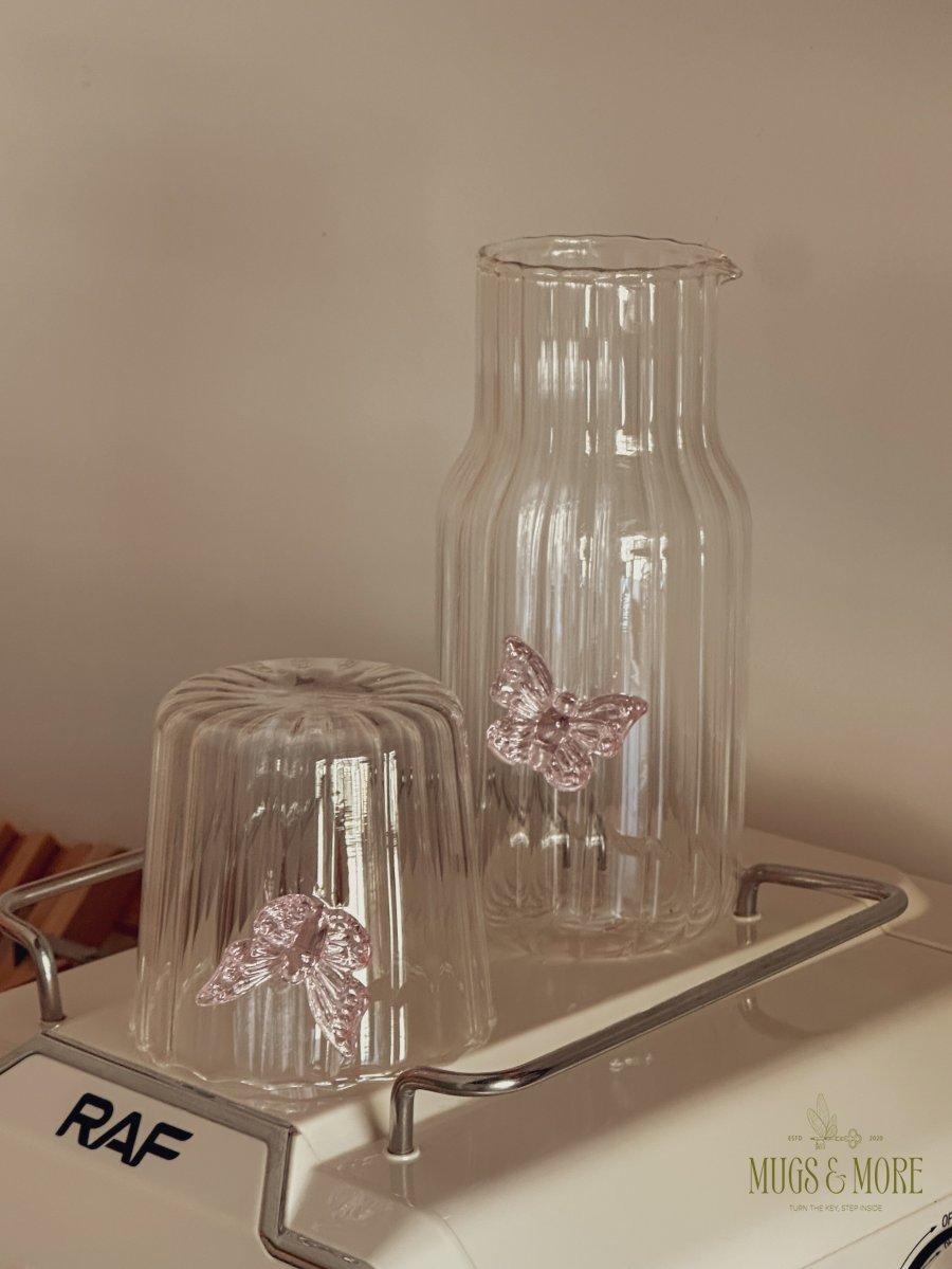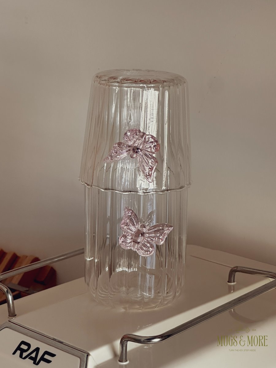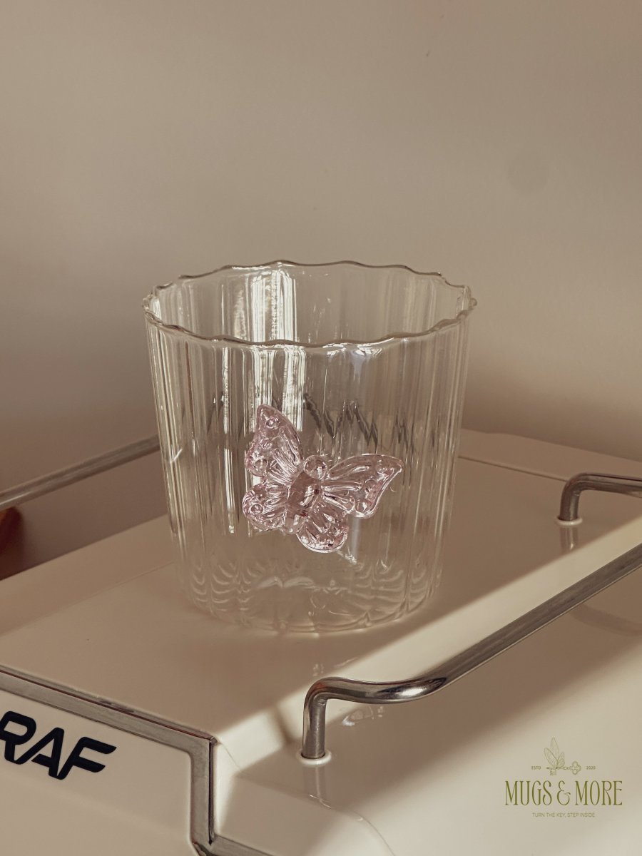 بريق ماء شفاف مع كاسة بفراشة بارزة