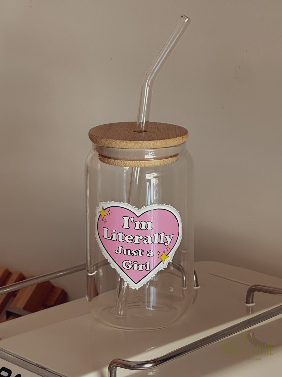 جرة شفافة بغطى خشب وشلمونة "I’m literally just a girl “