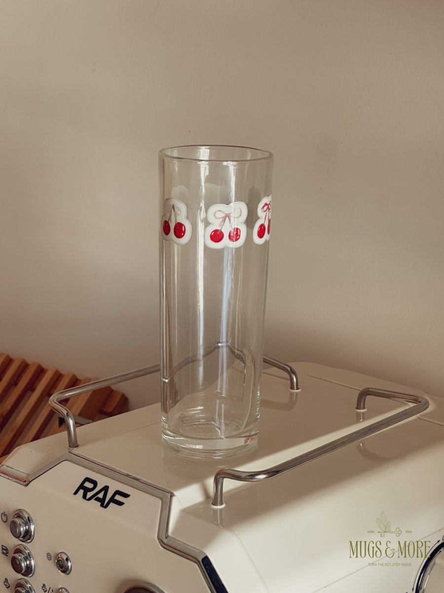 كاسة شفافة طويلة برسمة كرز جميلة