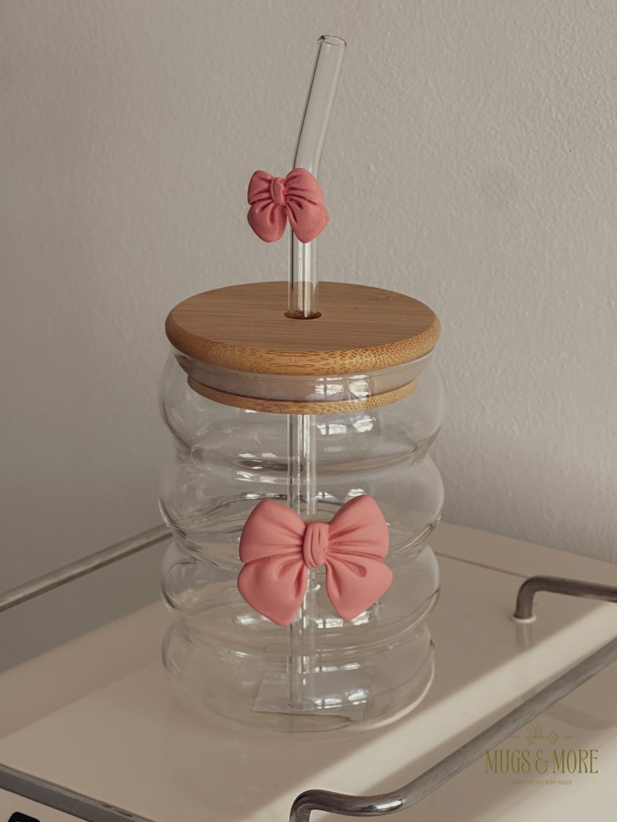 جرة شفافة مع غطاية خشب وشلمونة بفيونكة جميلة