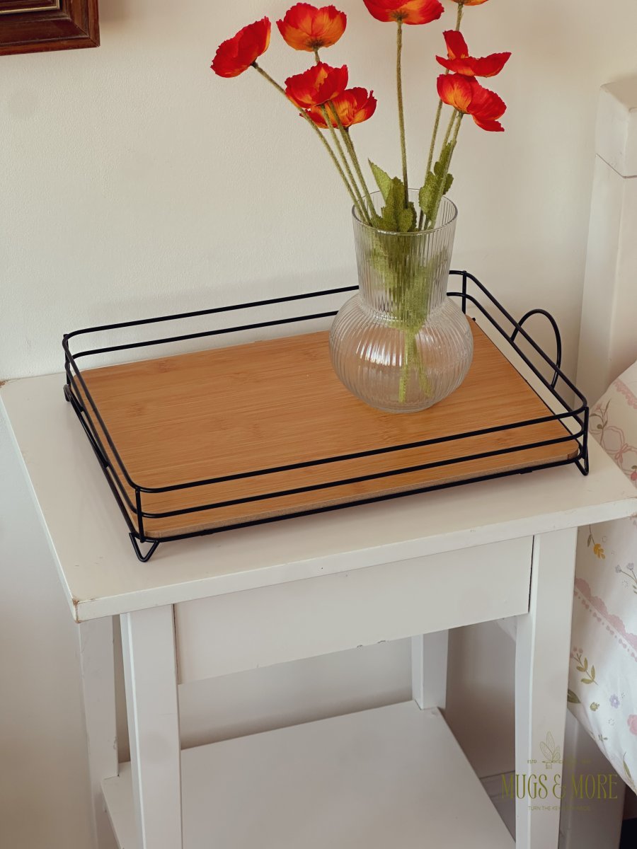 صواني شكل مستطيل بقاعدة خشب بامبو