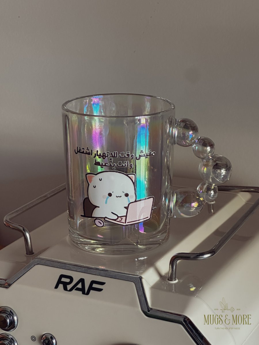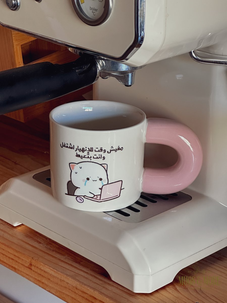 كوب بعبارة "مفيش وقت للإنهيار اشتغل وانت بتعيط"