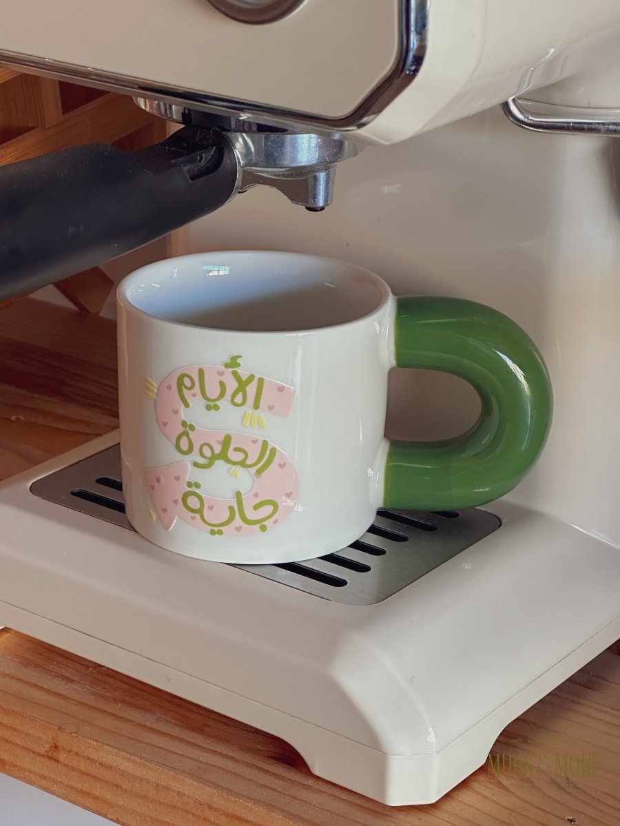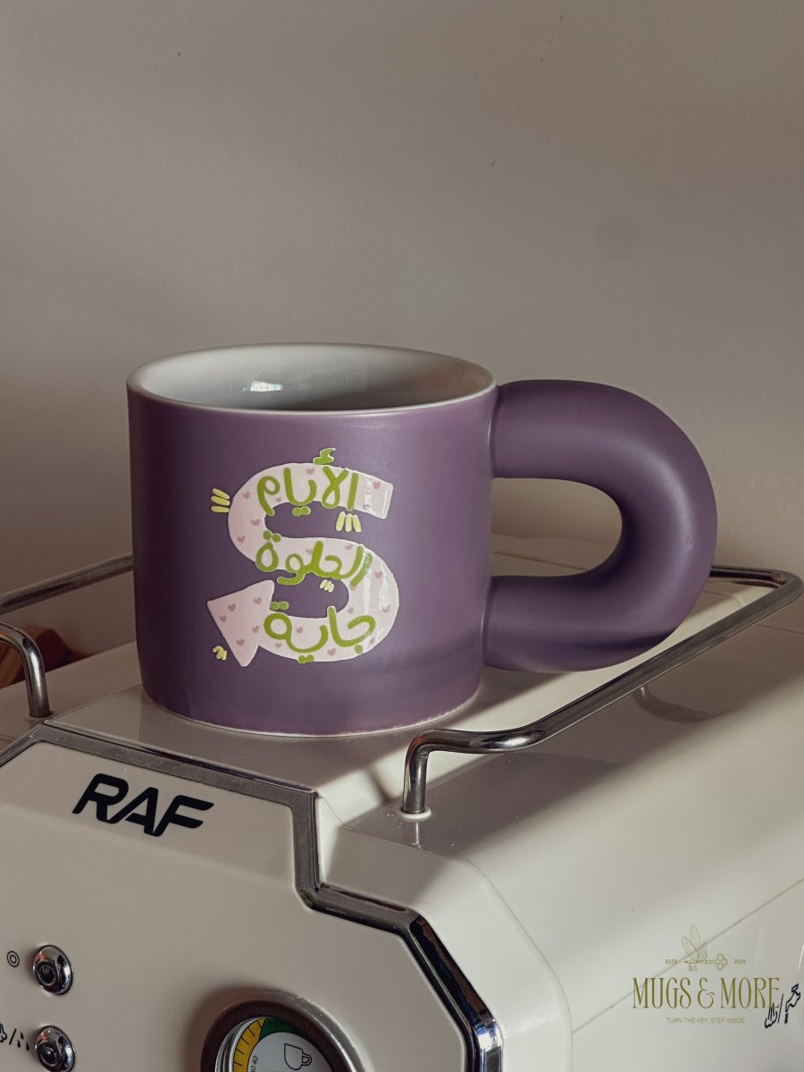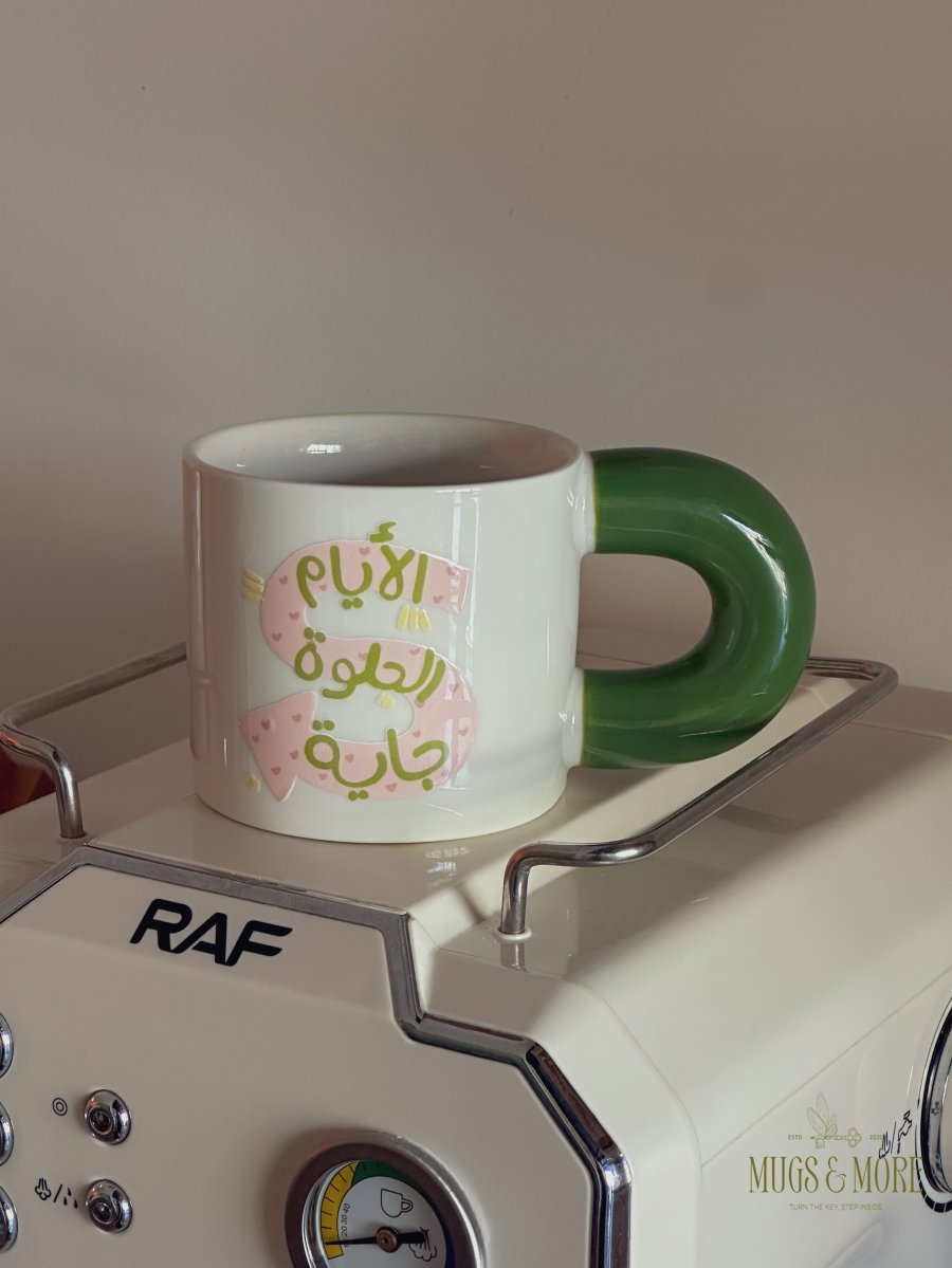 كوب بعبارة "الأيام الحلوة جاية"