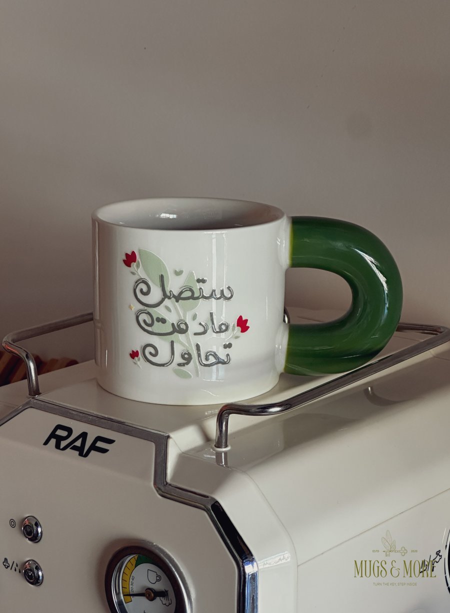 كوب بعبارة "ستصل مادمت تحاول"