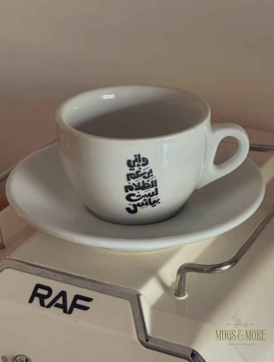 كوب مميز بعبارة "وإني برغم الظلام لست بيائس"