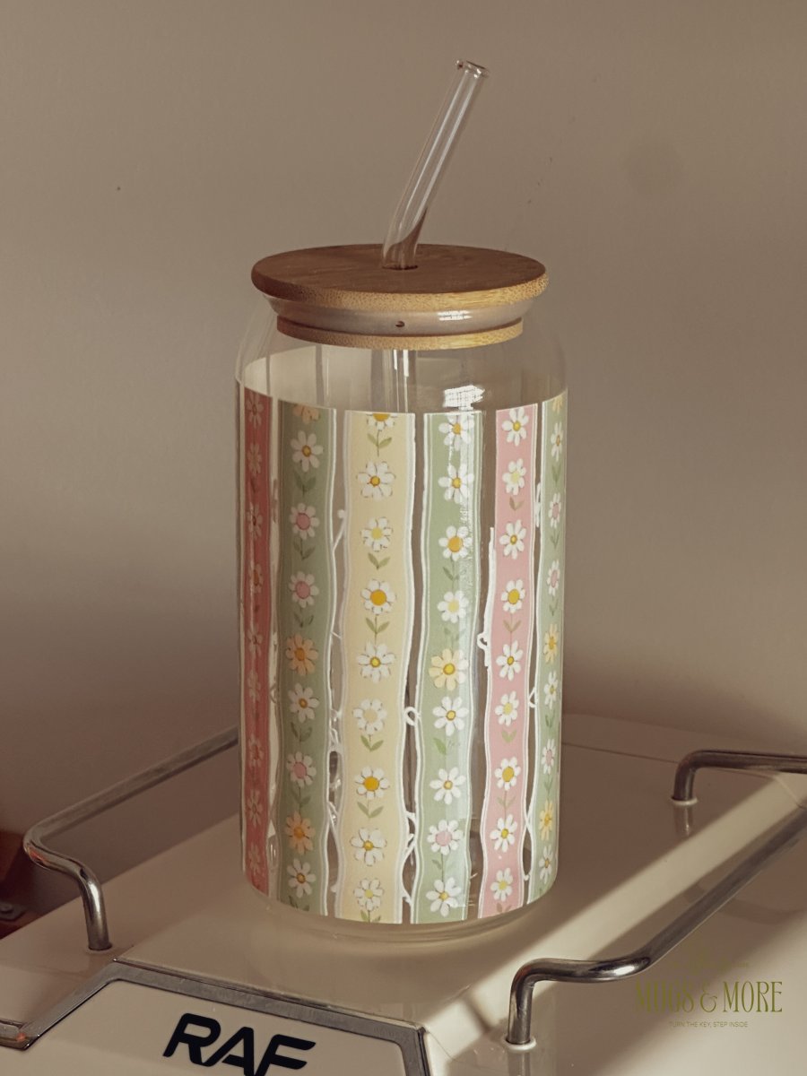 جرة شفافة بغطى خشب وشلمونة رسمات جميلة