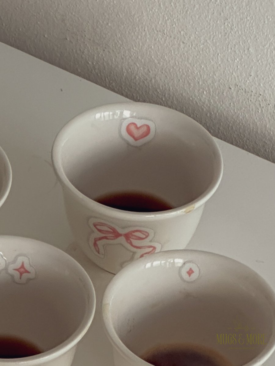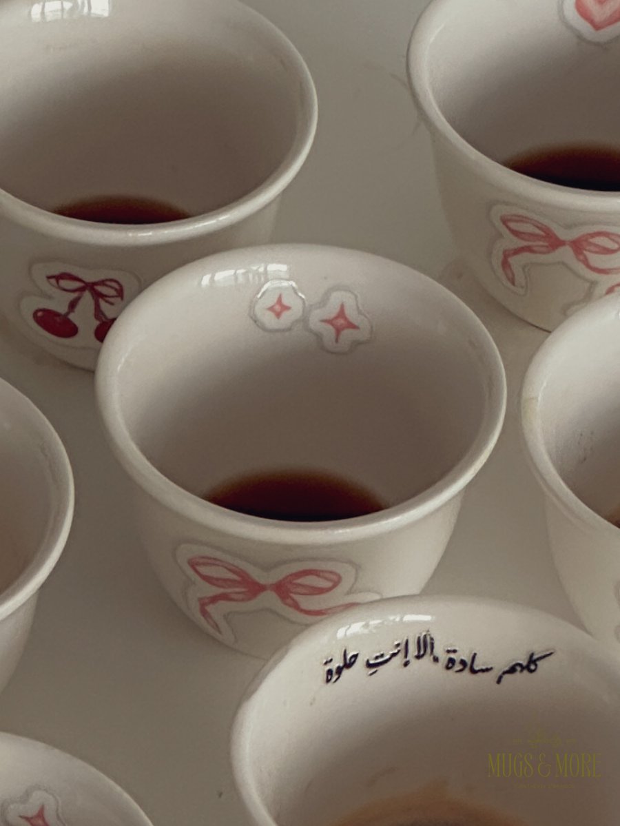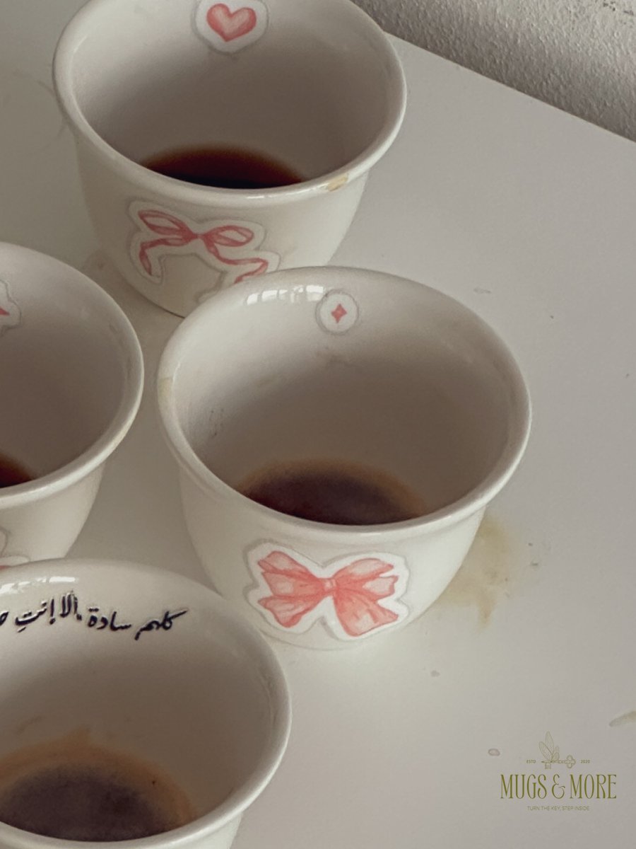 فنجان قهوة سادة ابيض برسمة فيونكة مع اضافة من الداخل
