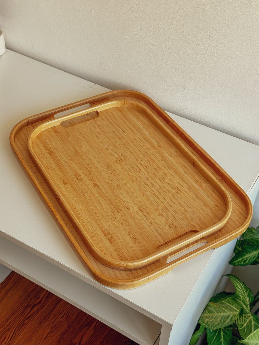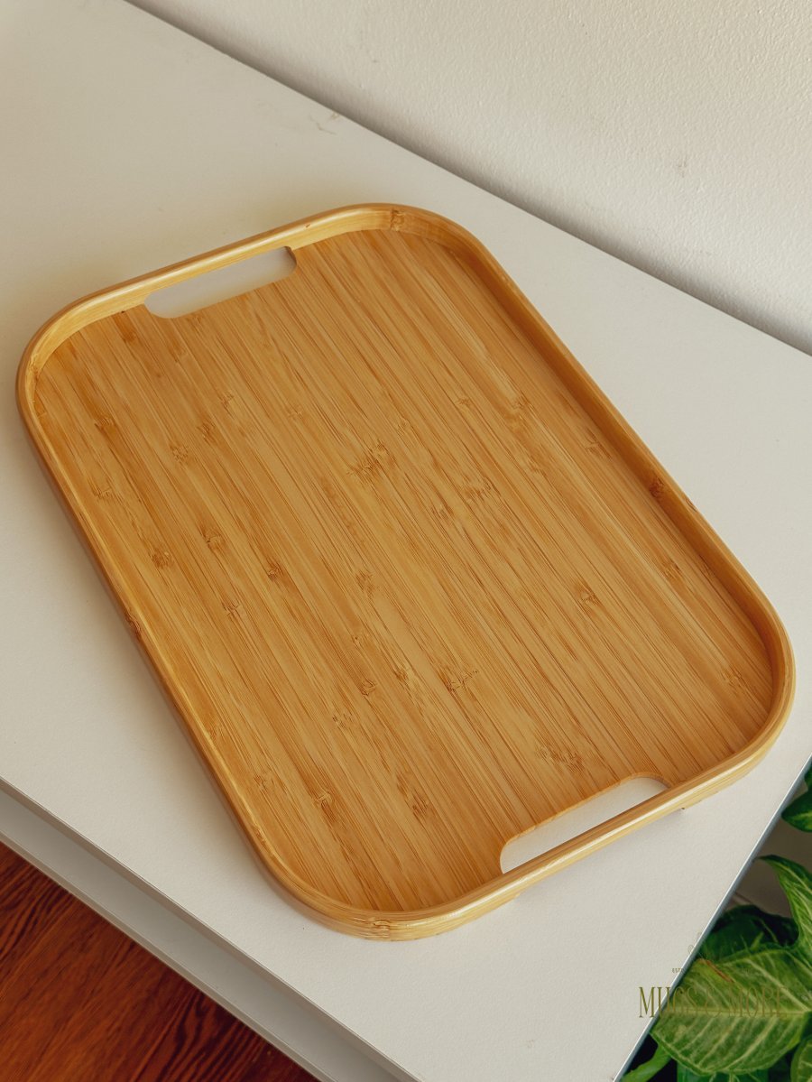 صينية خشب بامبو بزاويا دائرية