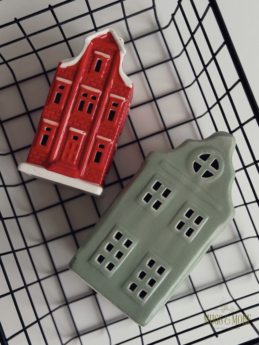 شمعدان شكل بيت لون اخضر بورسلان اضاءة ذاتية