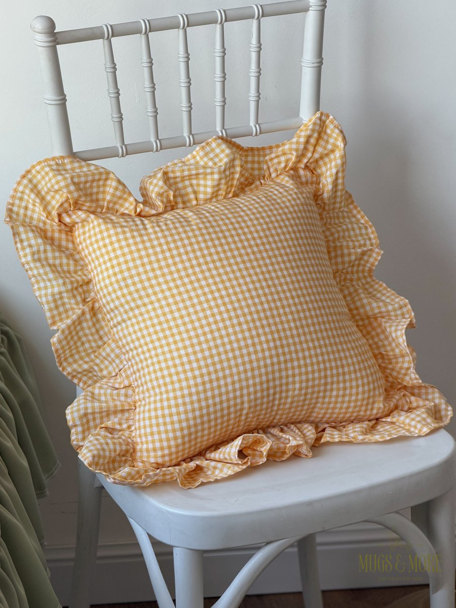 وسادة شكل مربع مع كشكش على الاطراف كروهات لون اورنج