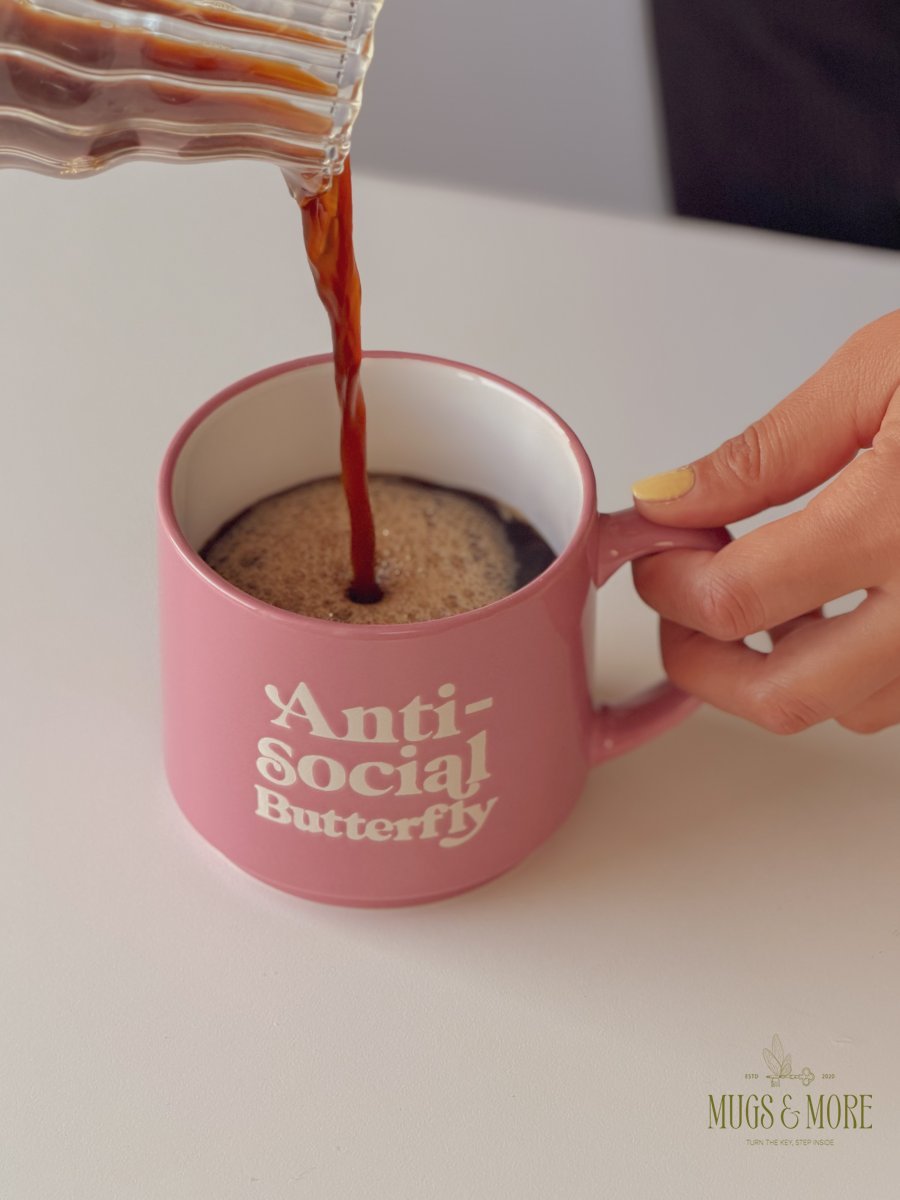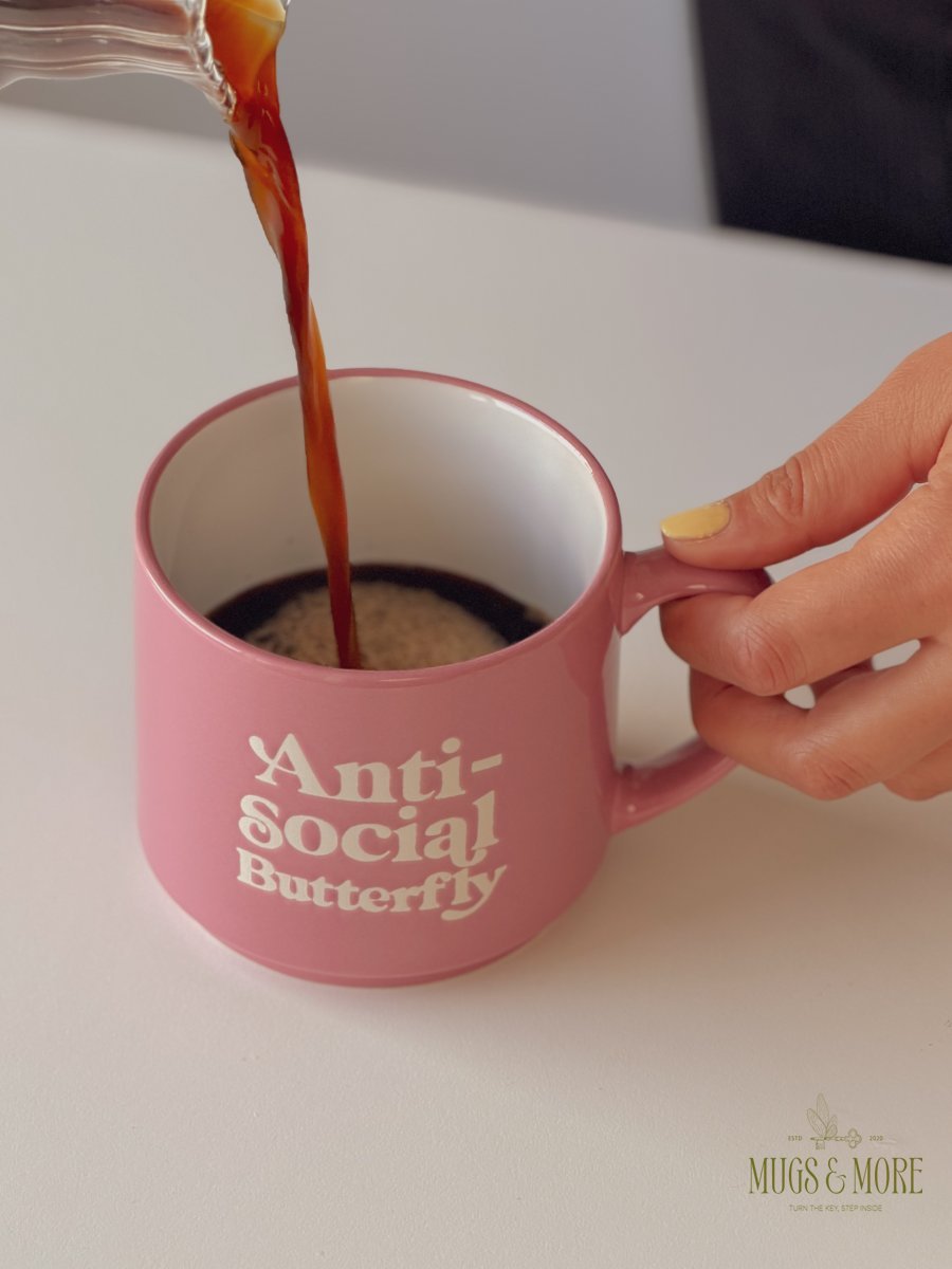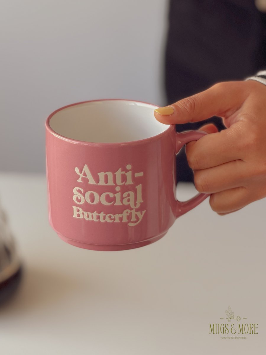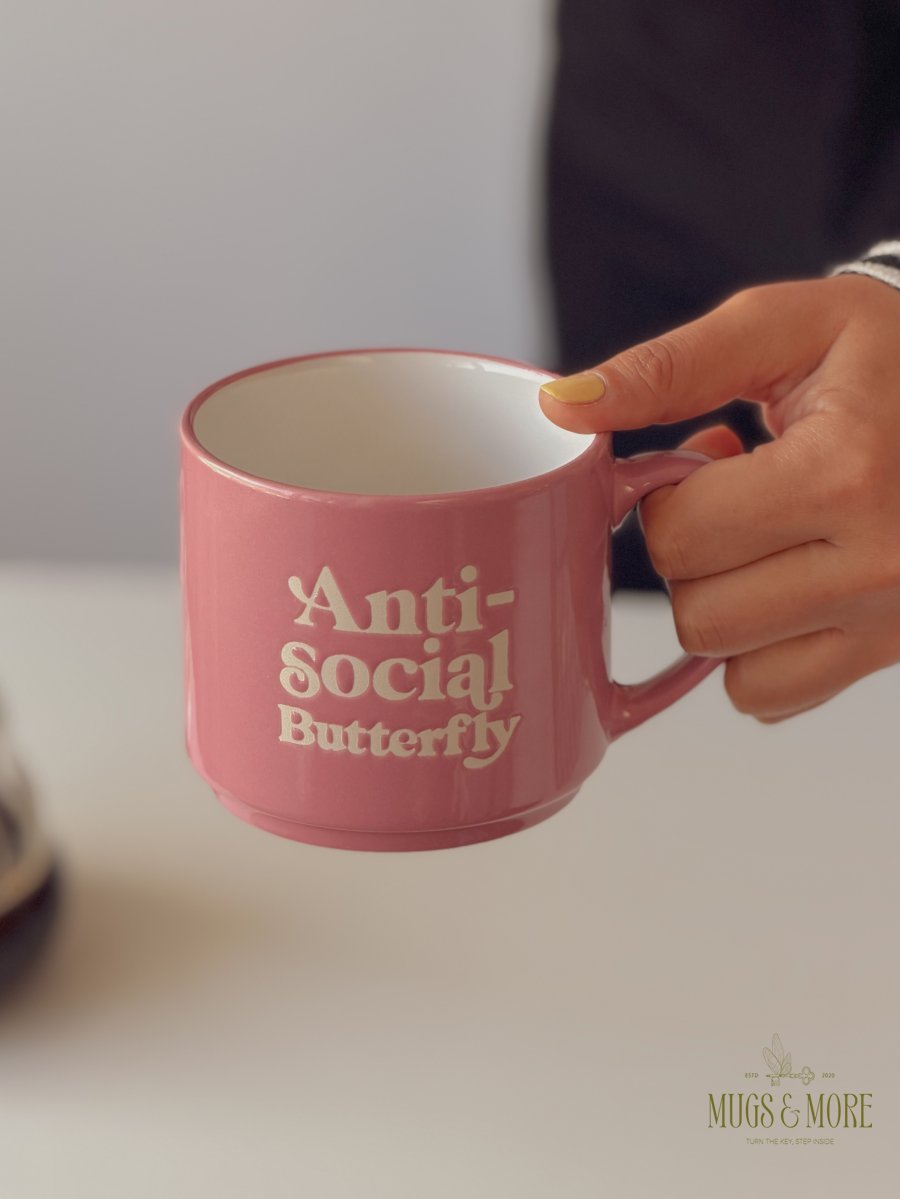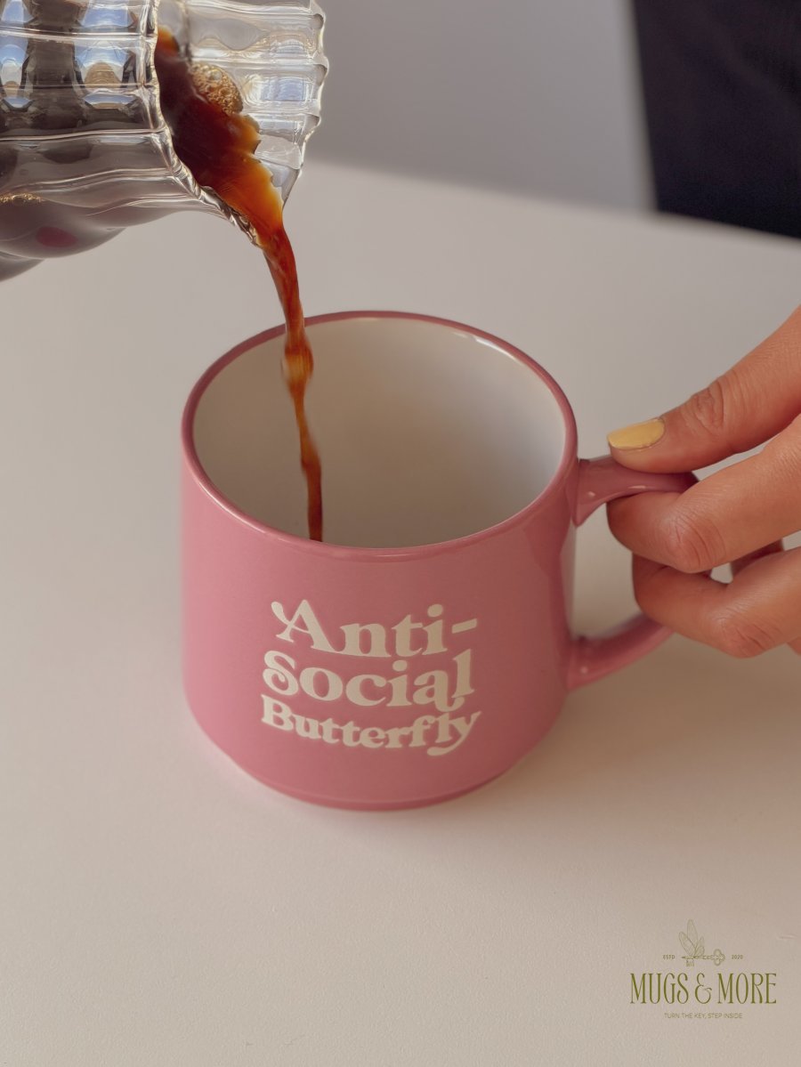 كوب بعبارة “anti social butterfly”