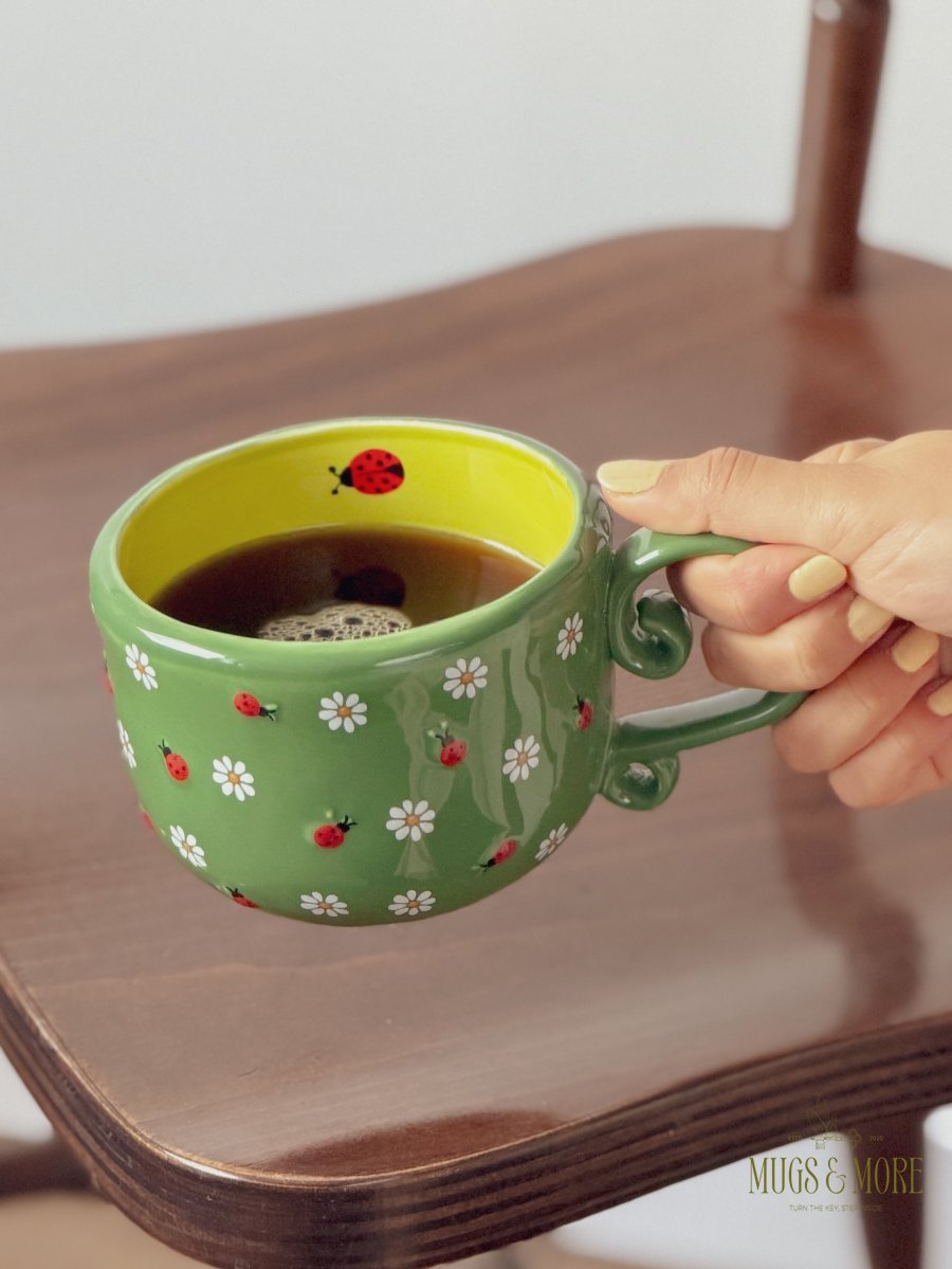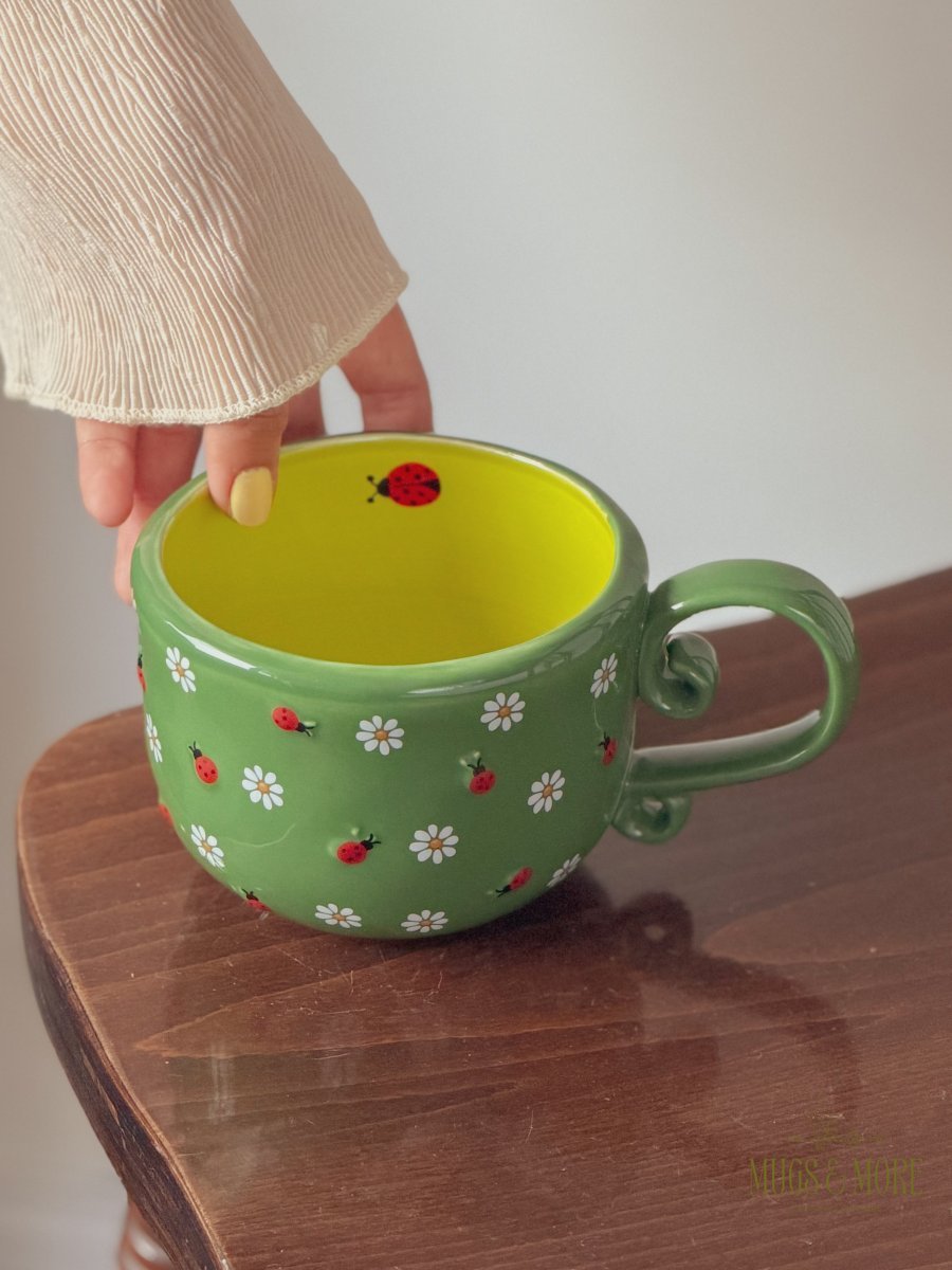 كوب الربيع برسمات دعسوقة وورد أقحوان