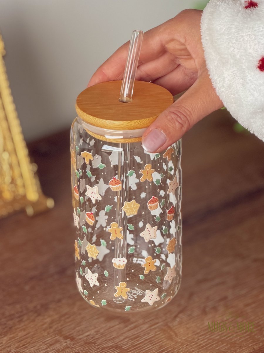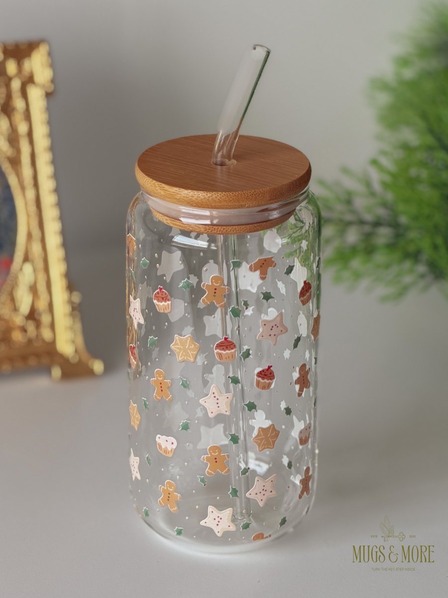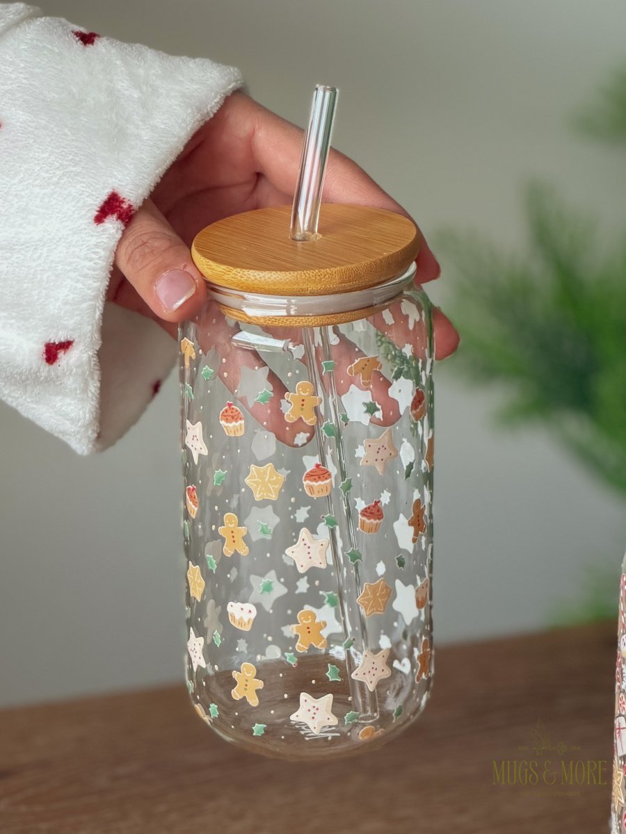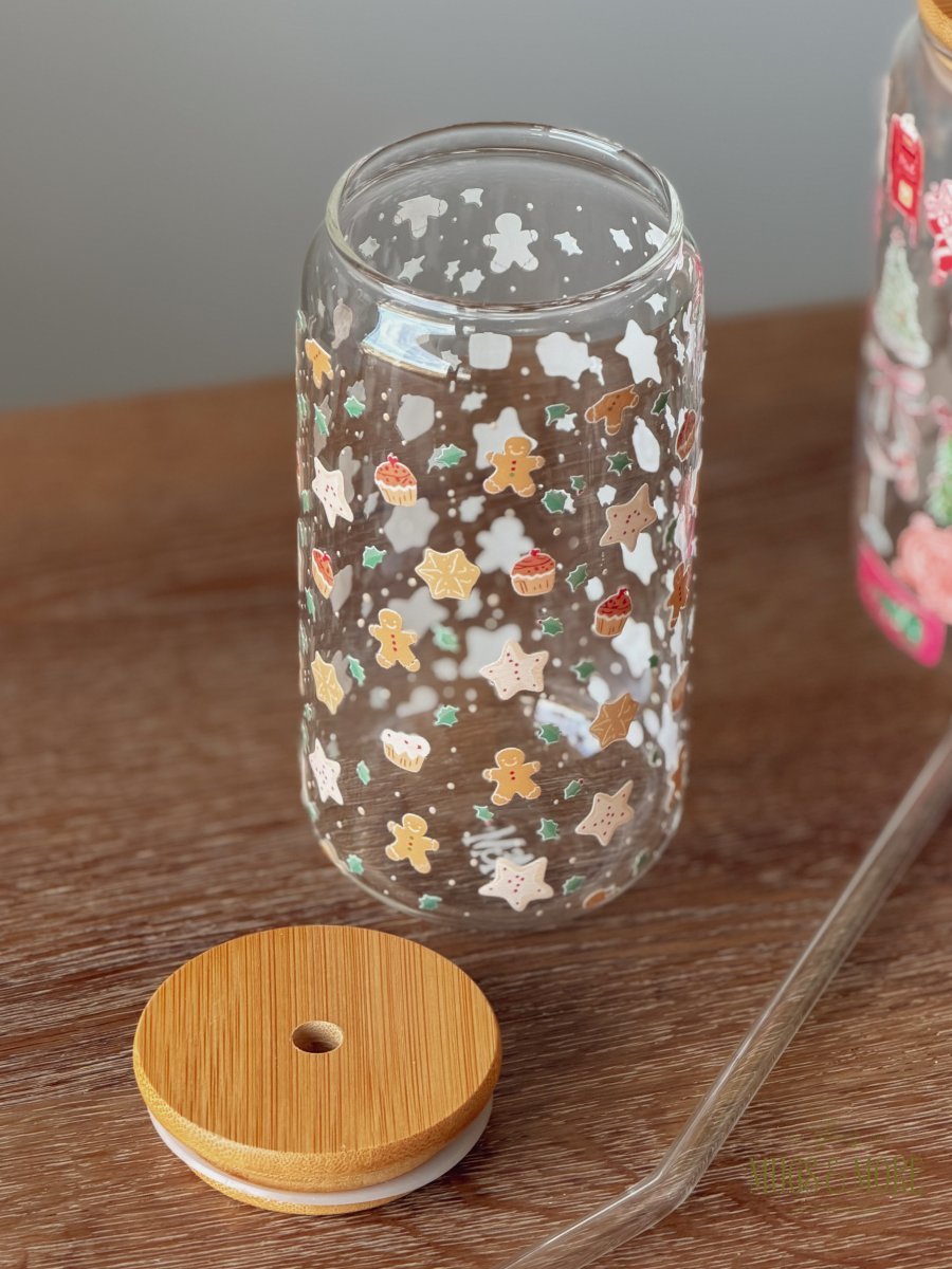 كوب رجل البسكويت شفاف مع غطى وشلمونة