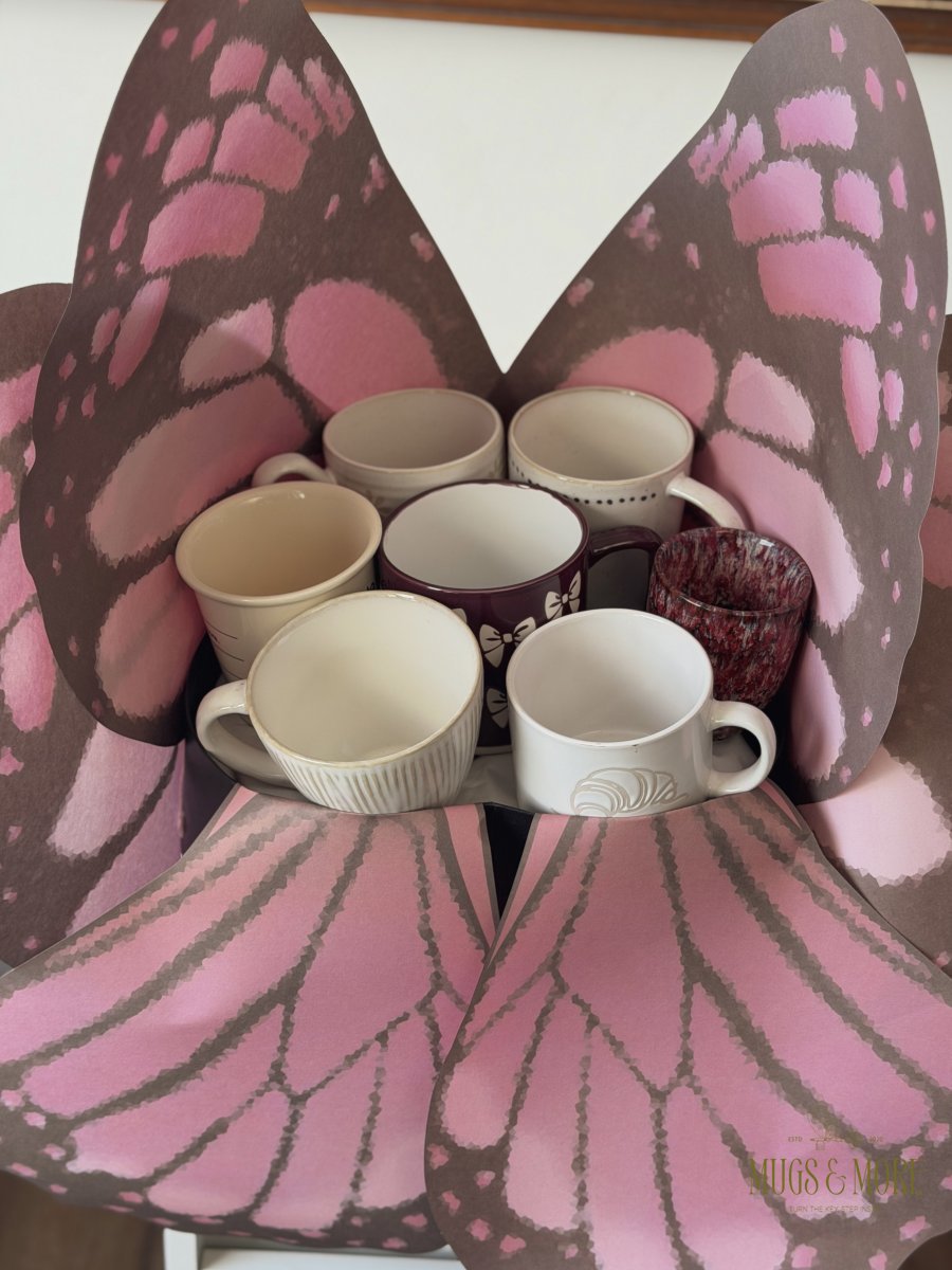 باقة 9 اكواب شكل فراشة باللون الفوشي حجم كبير
