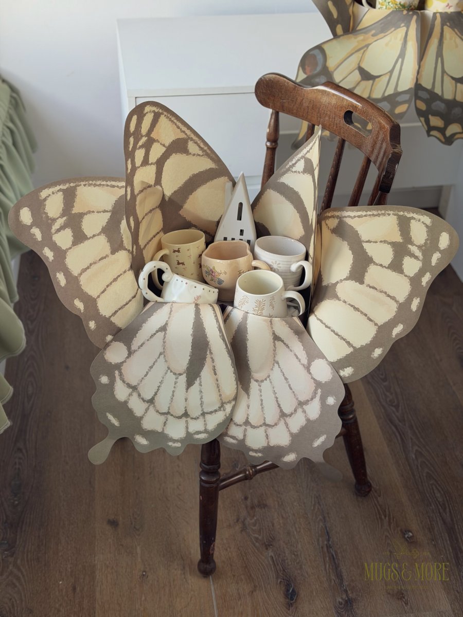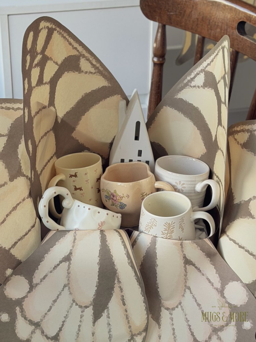 باقة 5 اكواب مع اضاءة ذاتية شكل بيت شكل فراشة باللون البيج حجم كبير