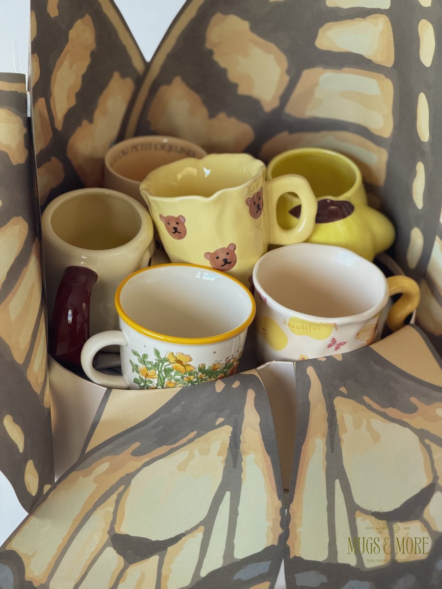 باقة 9 اكواب شكل فراشة باللون الاصفر حجم كبير