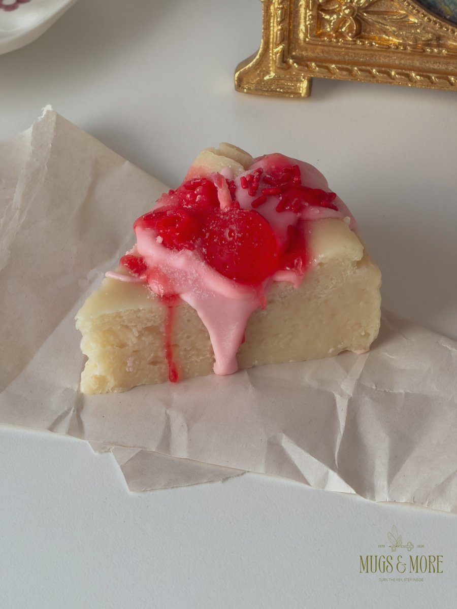 شمعة على شكل تشيز كيك فراولة مصنوعة يدوياً