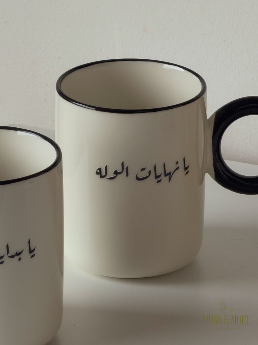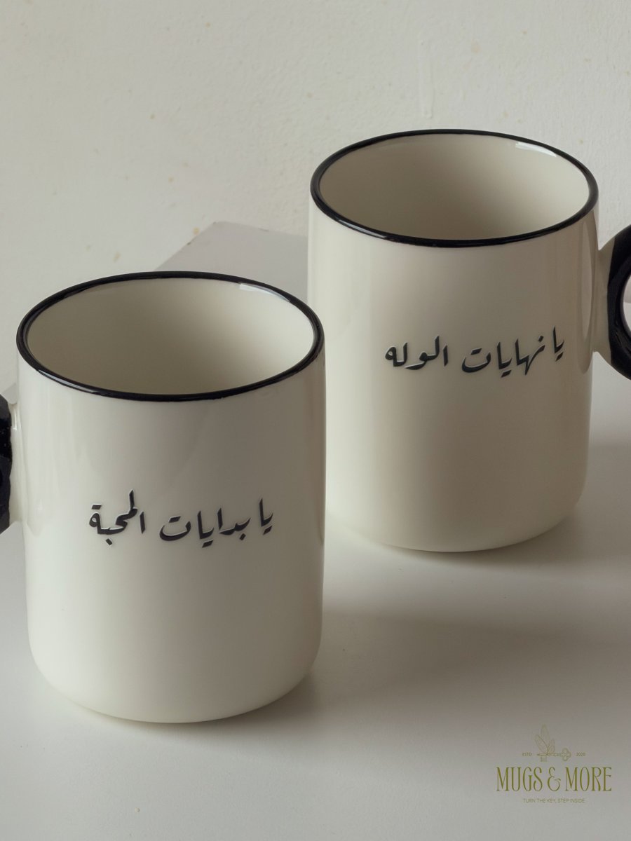 طقم كوبين بعبارات تكمل بعض "يا بدايات المحبة.. يا نهايات الوله"