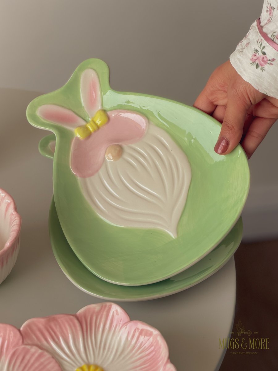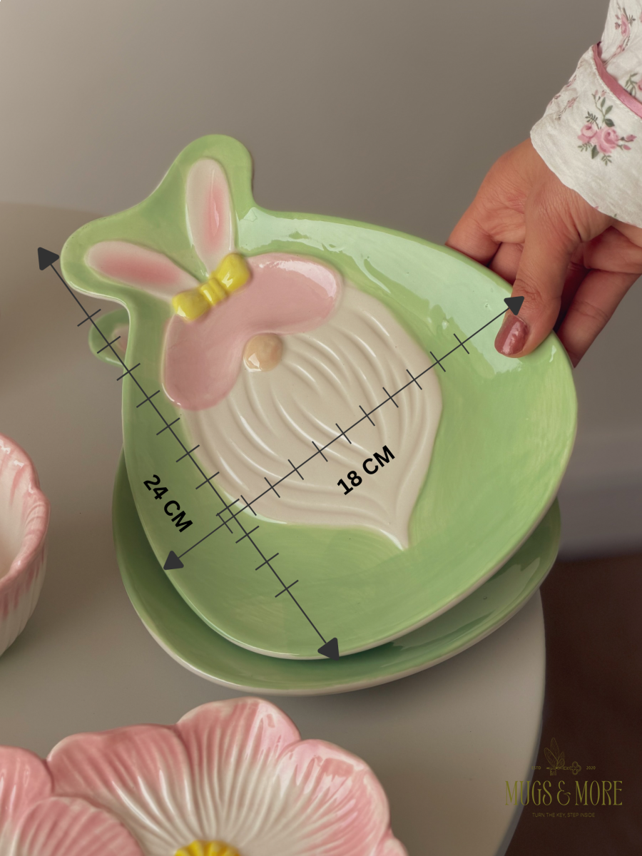 صحن مسطح شكل ارنب الربيع مصنوع وملوّن يدويًا