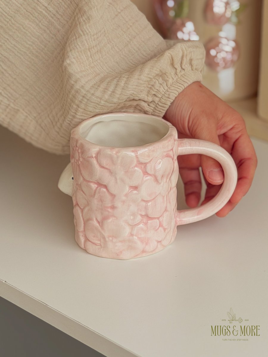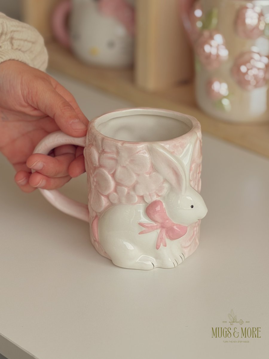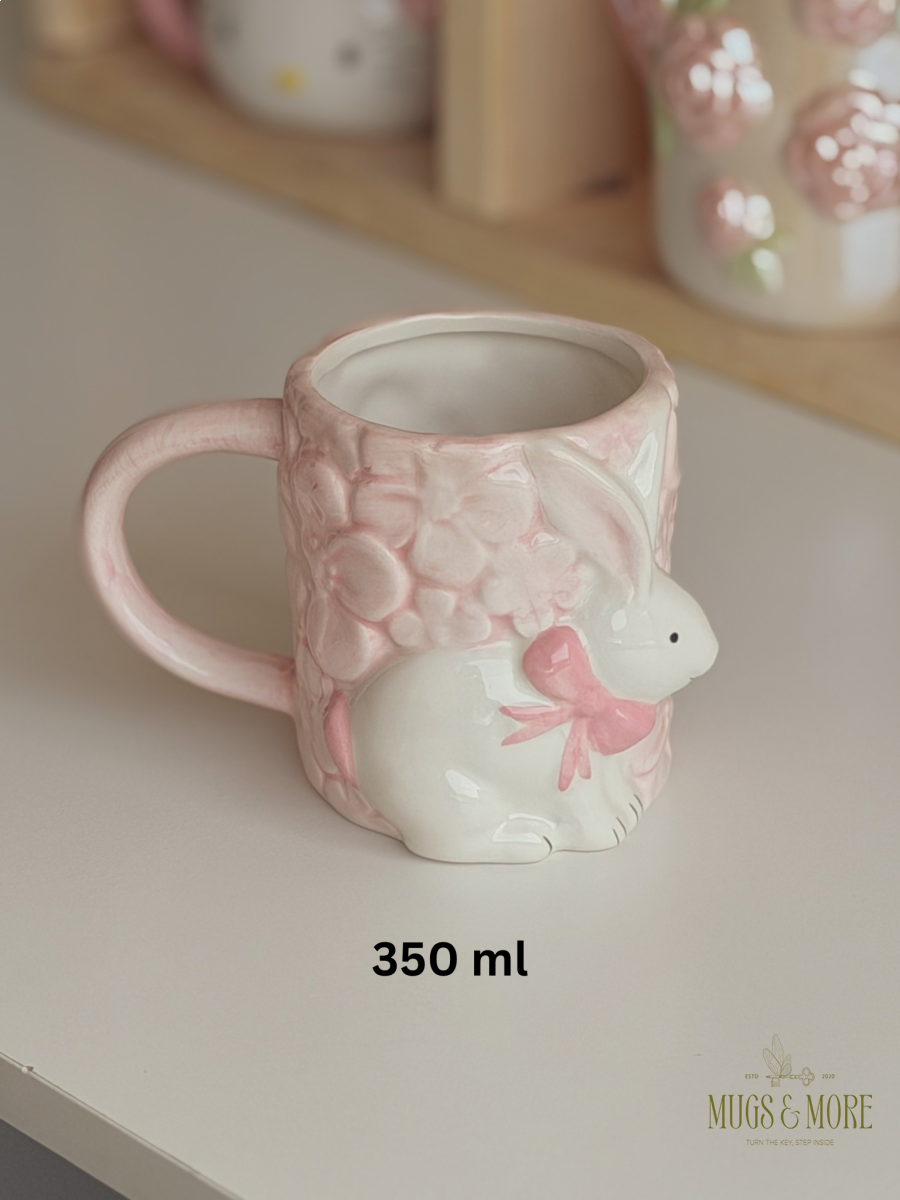 كوب مورد مع أرنب الربيع لون زهري