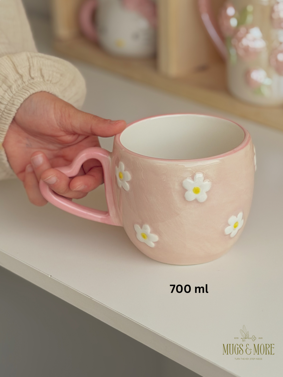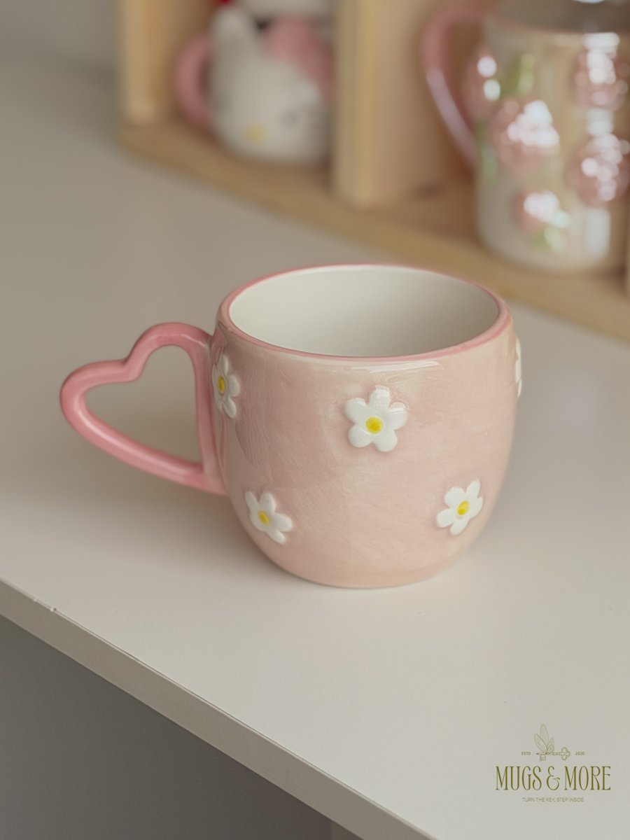 كوب لون زهري حجم كبير بورد أقحوان بارز ثيم ربيعي