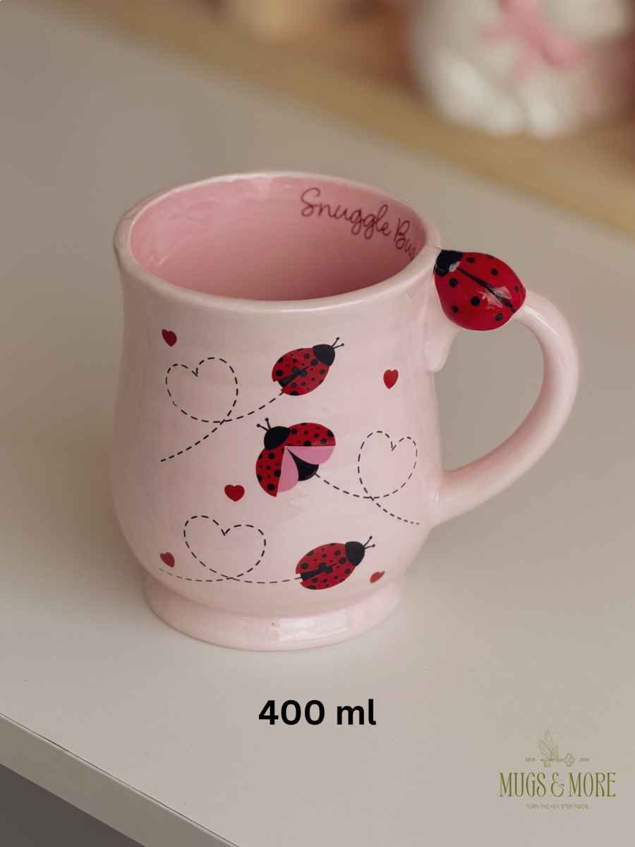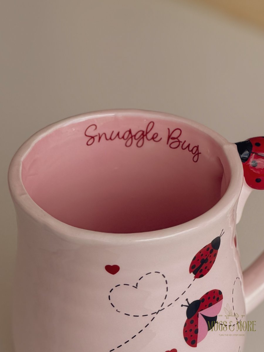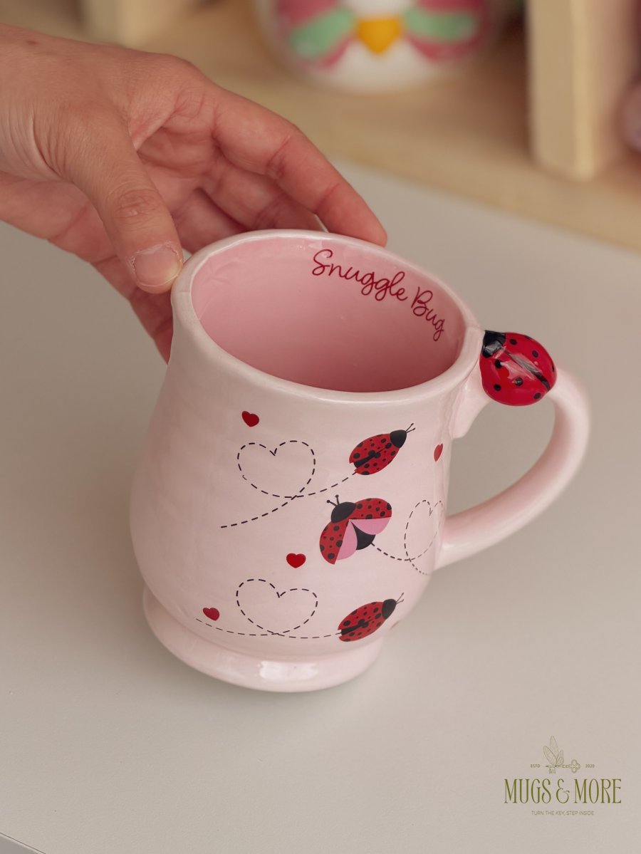 كوب برسومات ربيعية ودعسوقة على اليد وعبارة "SNUGGLE BUG" في الداخل