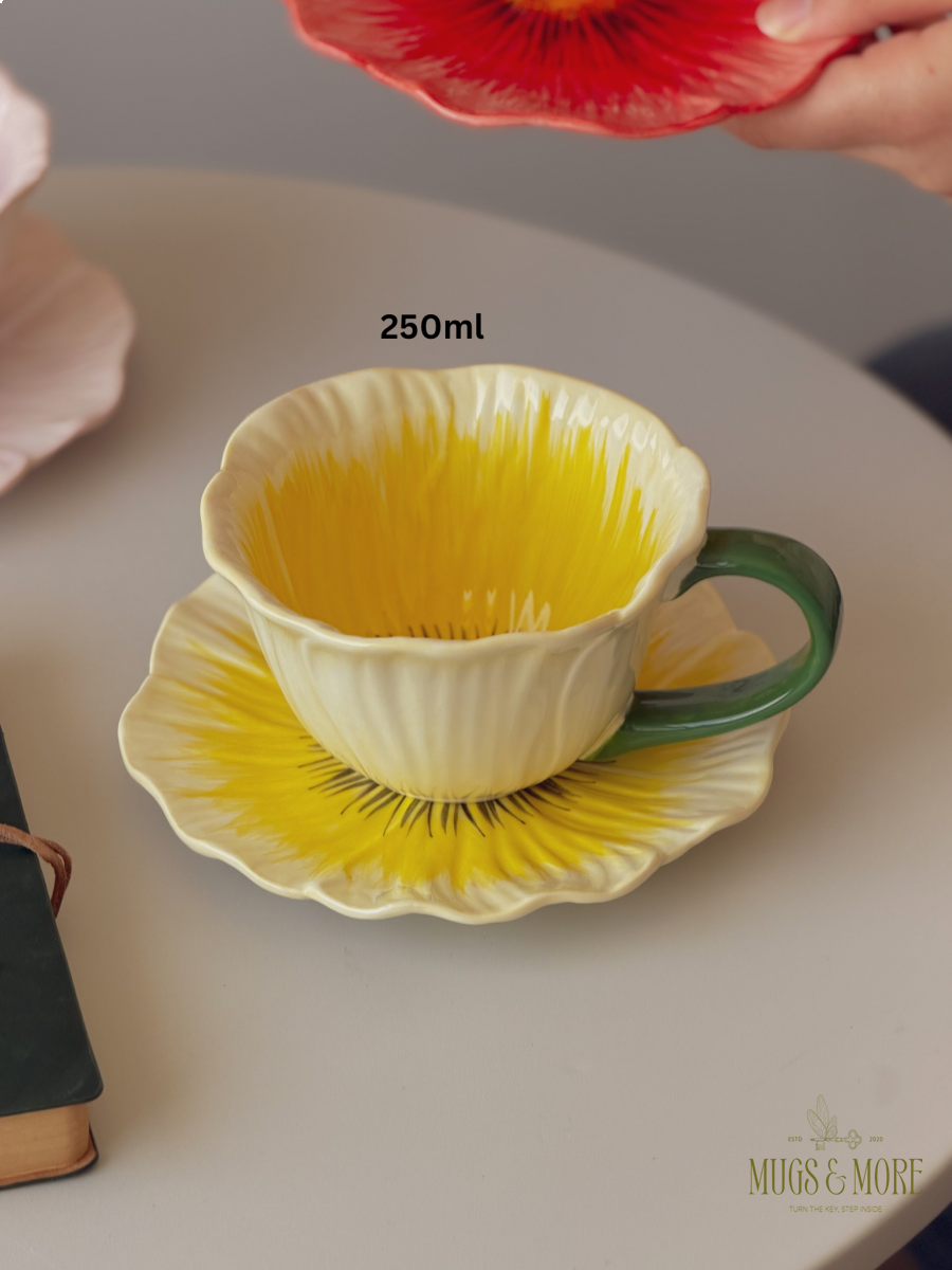 كوب بتصميم وردة مع صحنه لون أصفر ثيم ربيعي