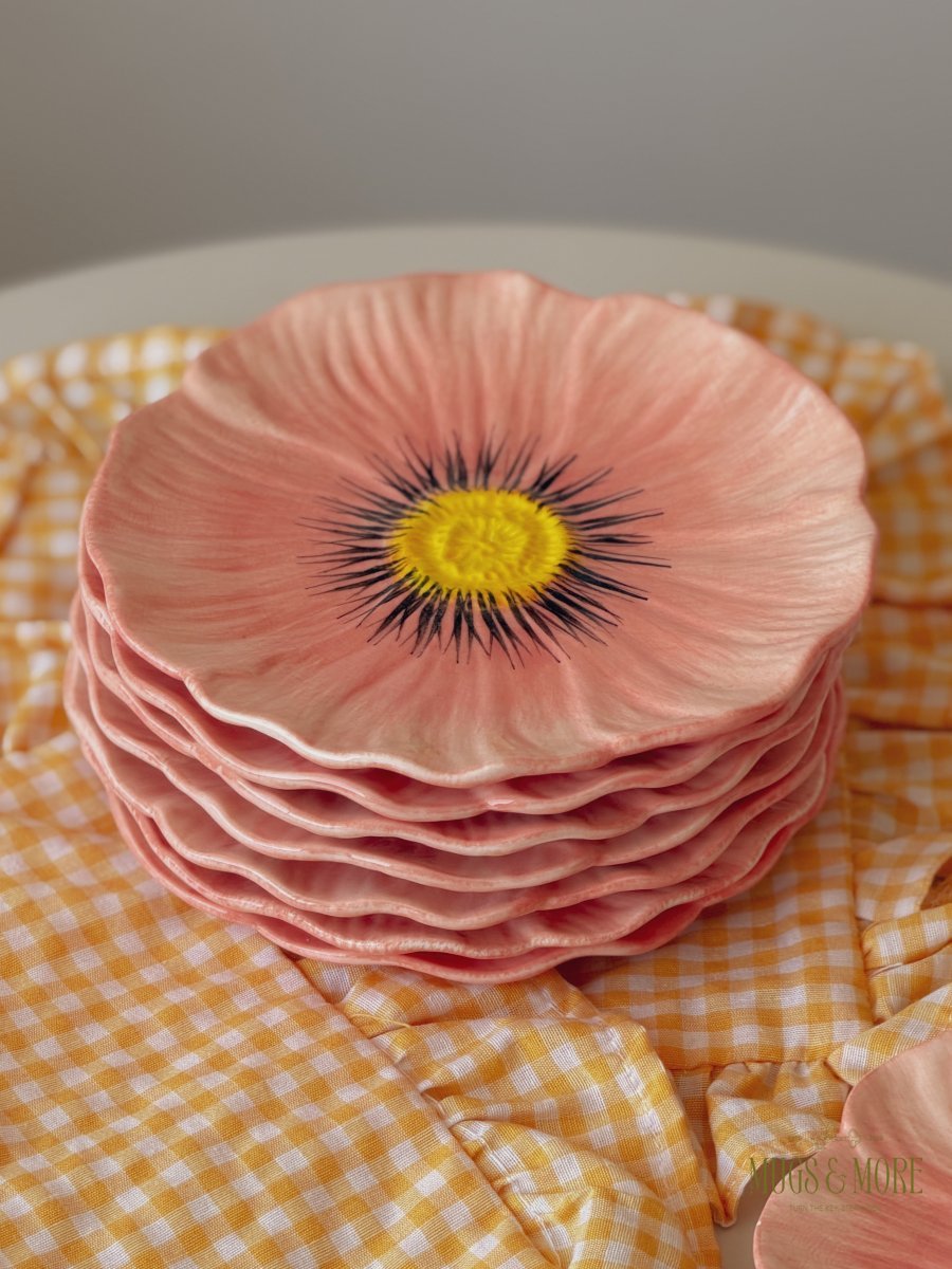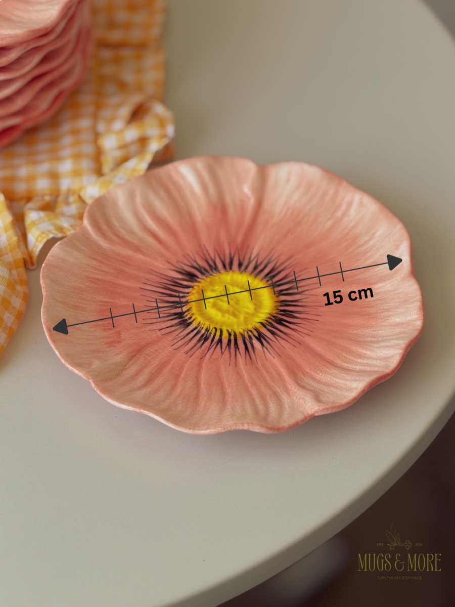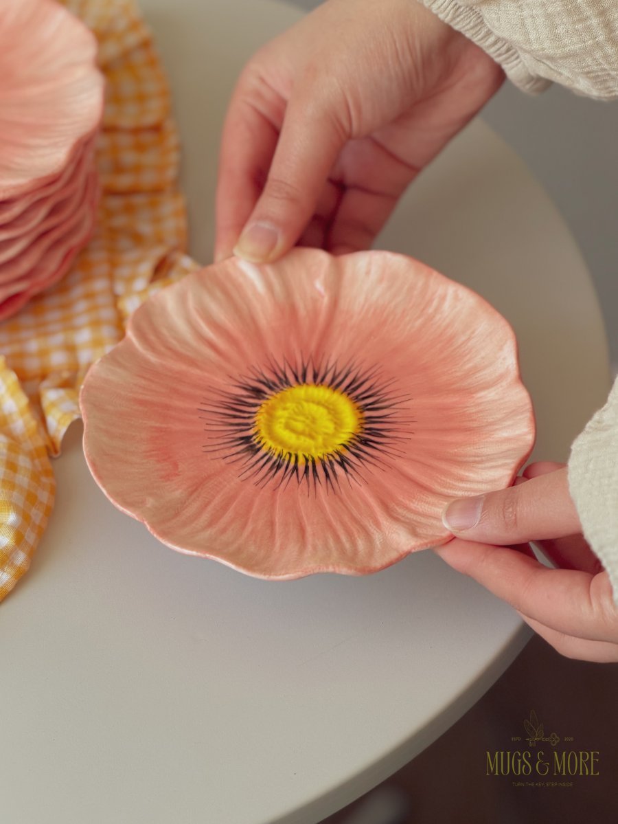 صحن تقديم بورسلان شكل وردة لون زهري ثيم ربيعي