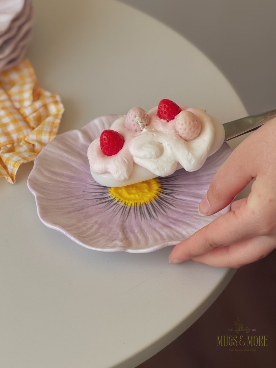 صحن تقديم بورسلان شكل وردة لون موف وأصفر ثيم ربيعي
