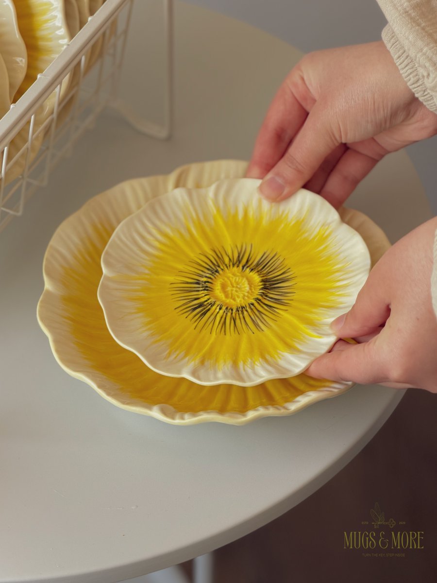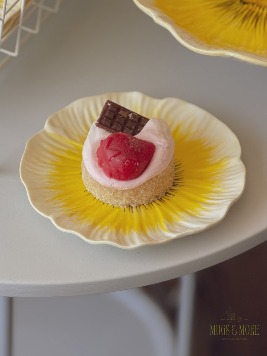 صحن تقديم بورسلان شكل وردة لون أصفر ثيم ربيعي