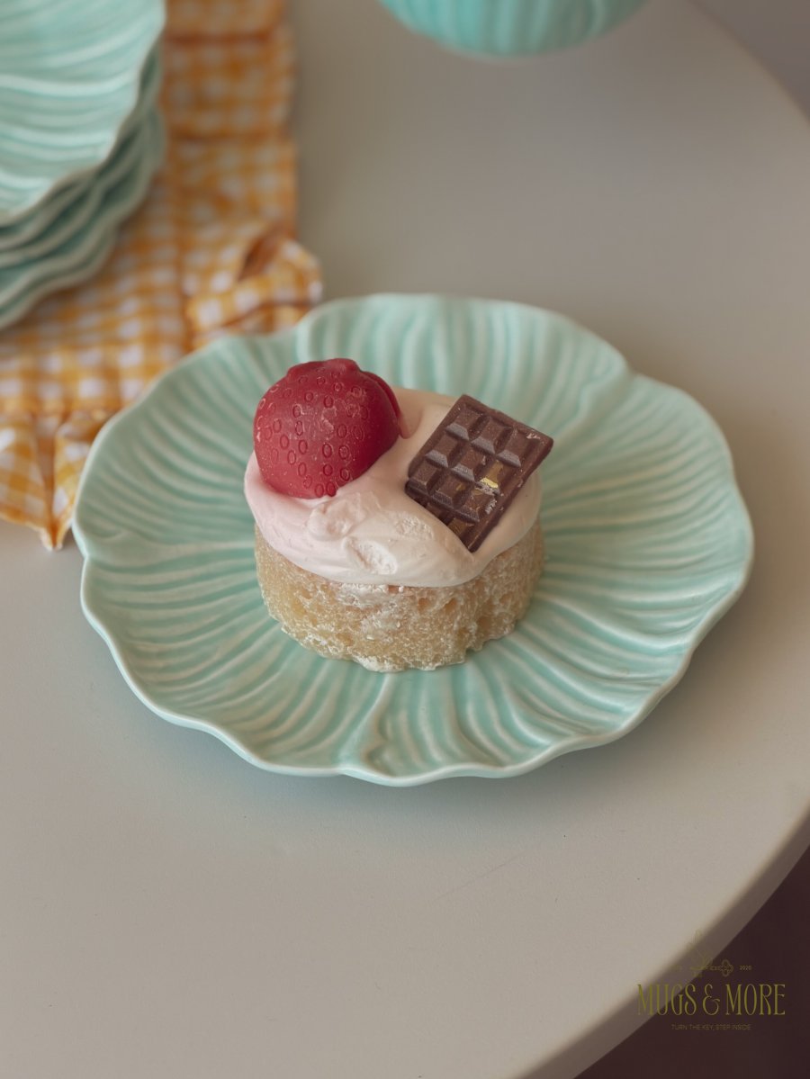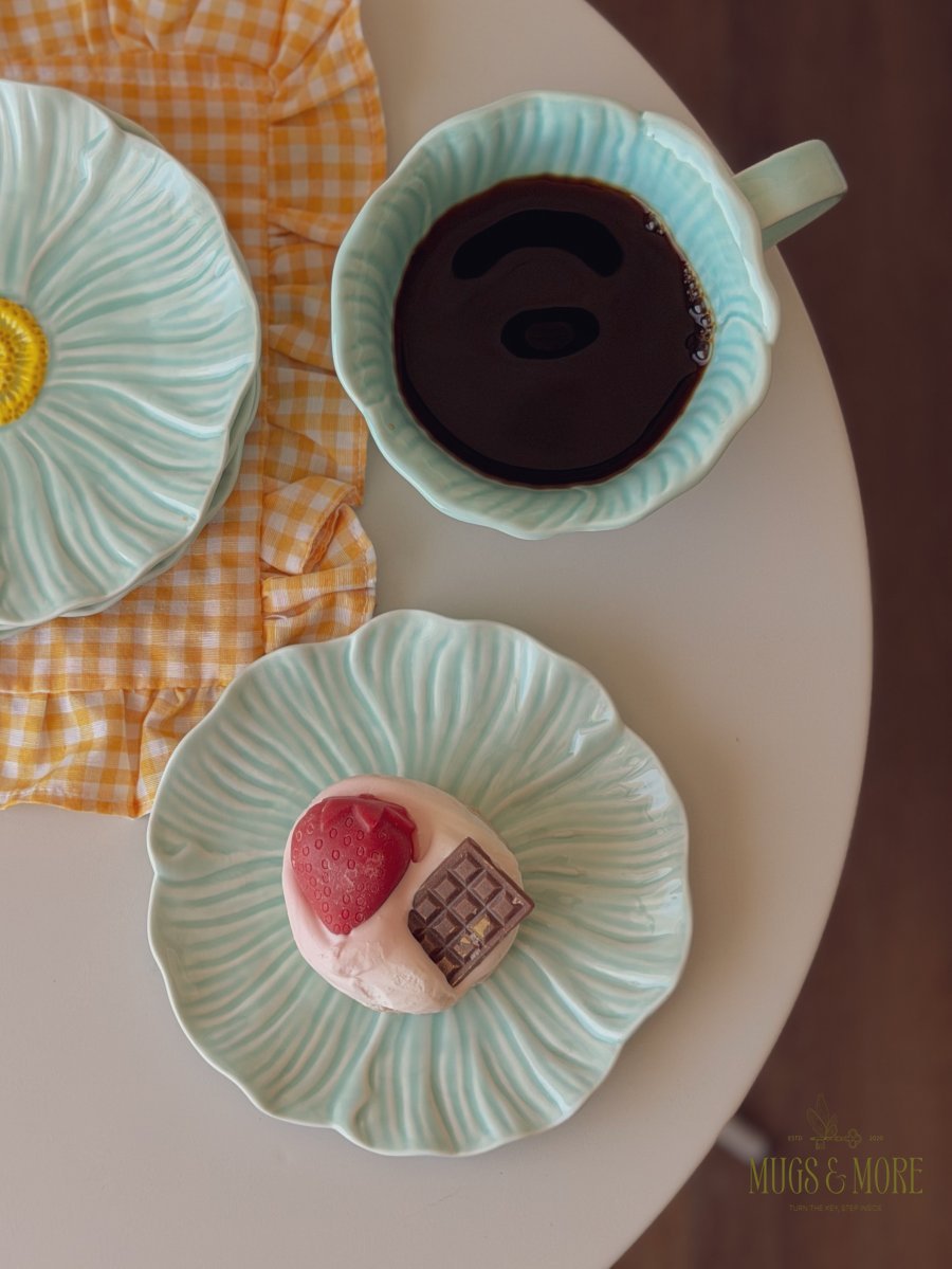 صحن تقديم بورسلان شكل وردة لون تركواز ثيم ربيعي