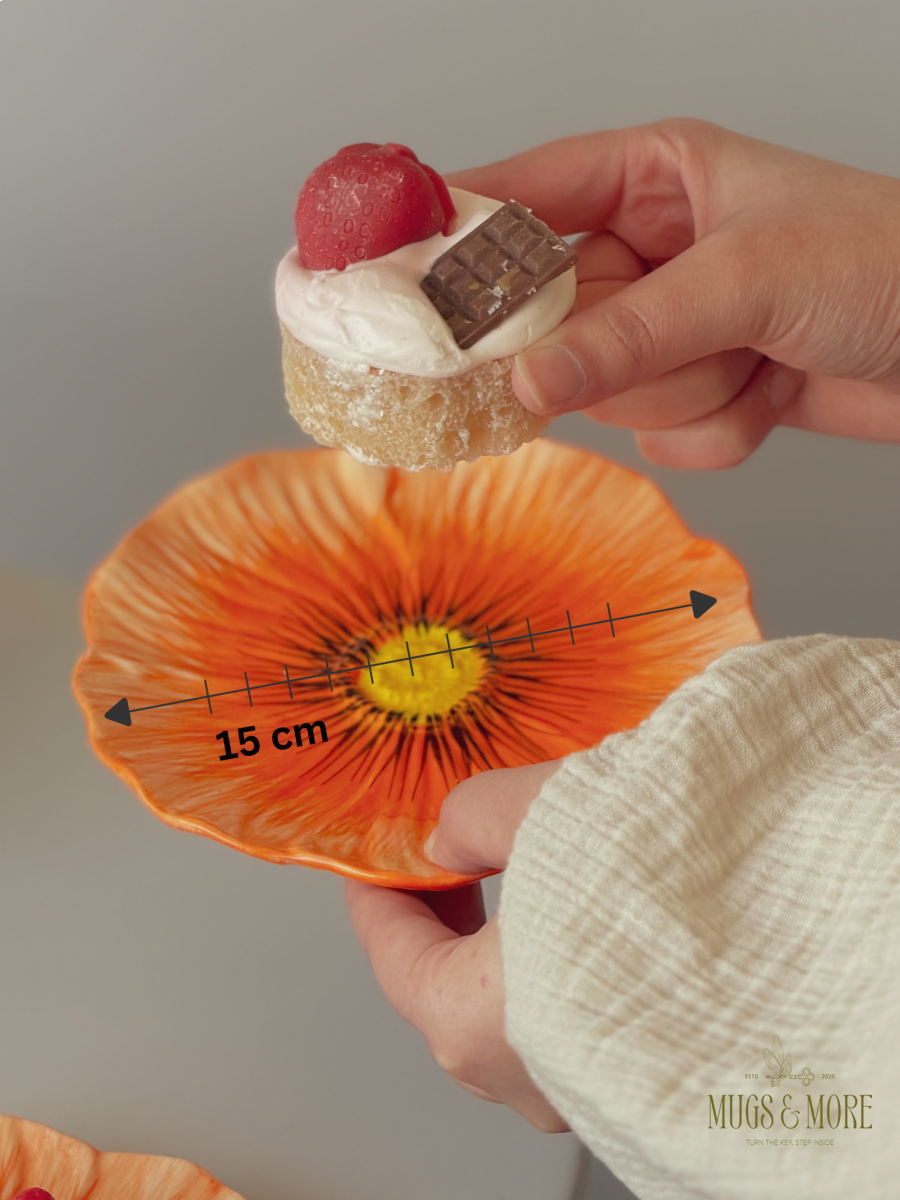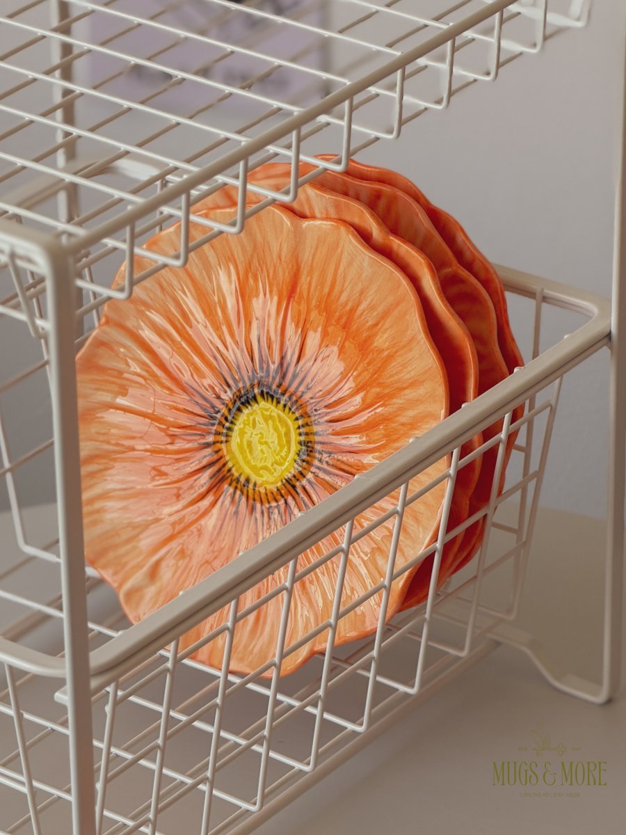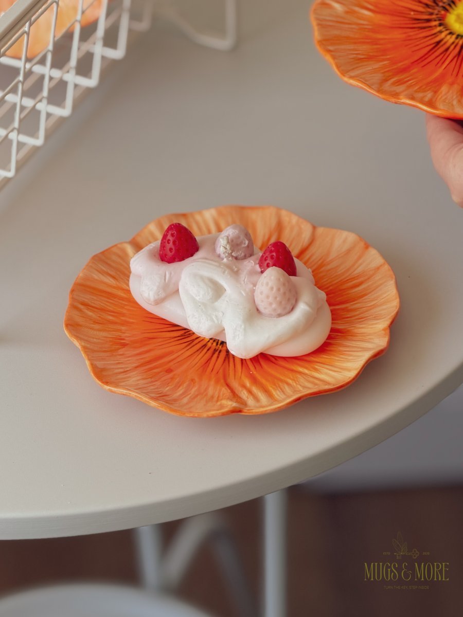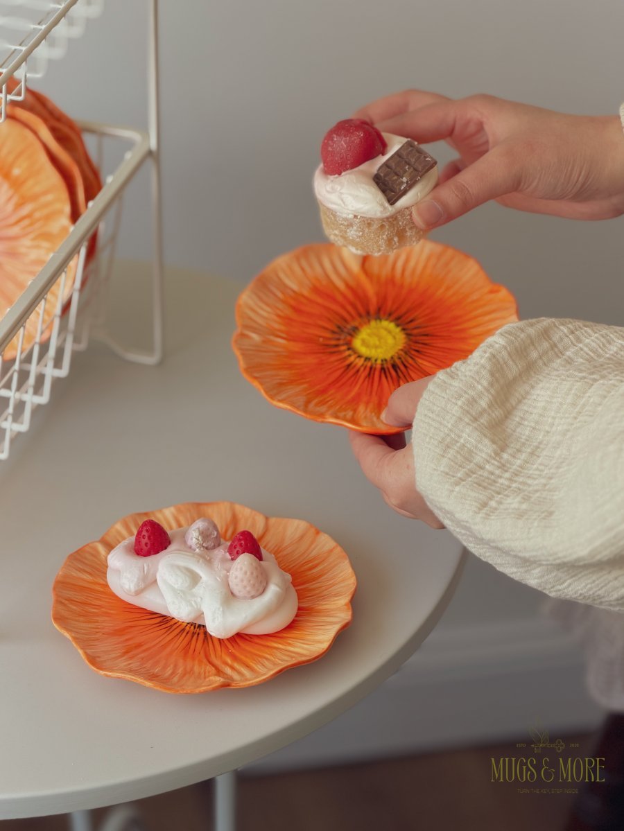 صحن تقديم بورسلان شكل وردة لون برتقالي ثيم ربيعي