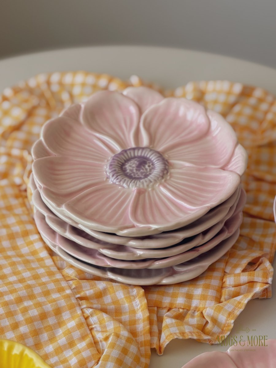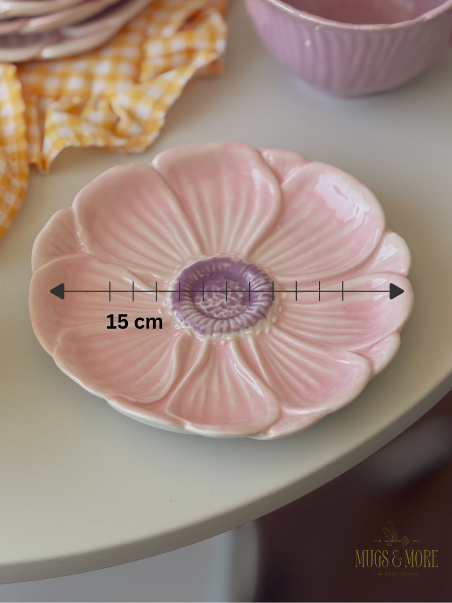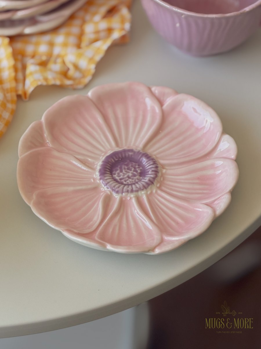 صحن تقديم بورسلان شكل وردة لون زهري وموف ثيم ربيعي