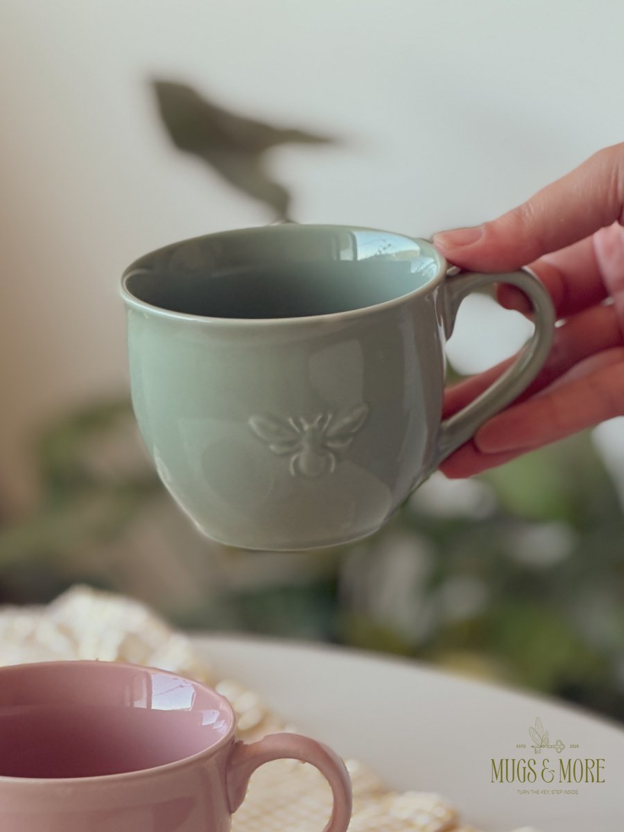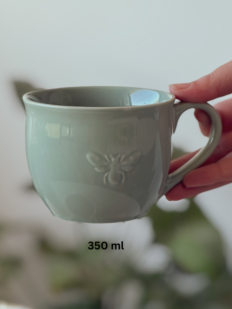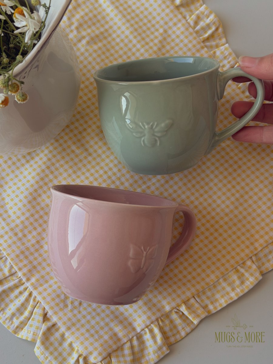 كوب بورسلان شكل كلاسيكي مع بروز على شكل نحلة/ فراشة