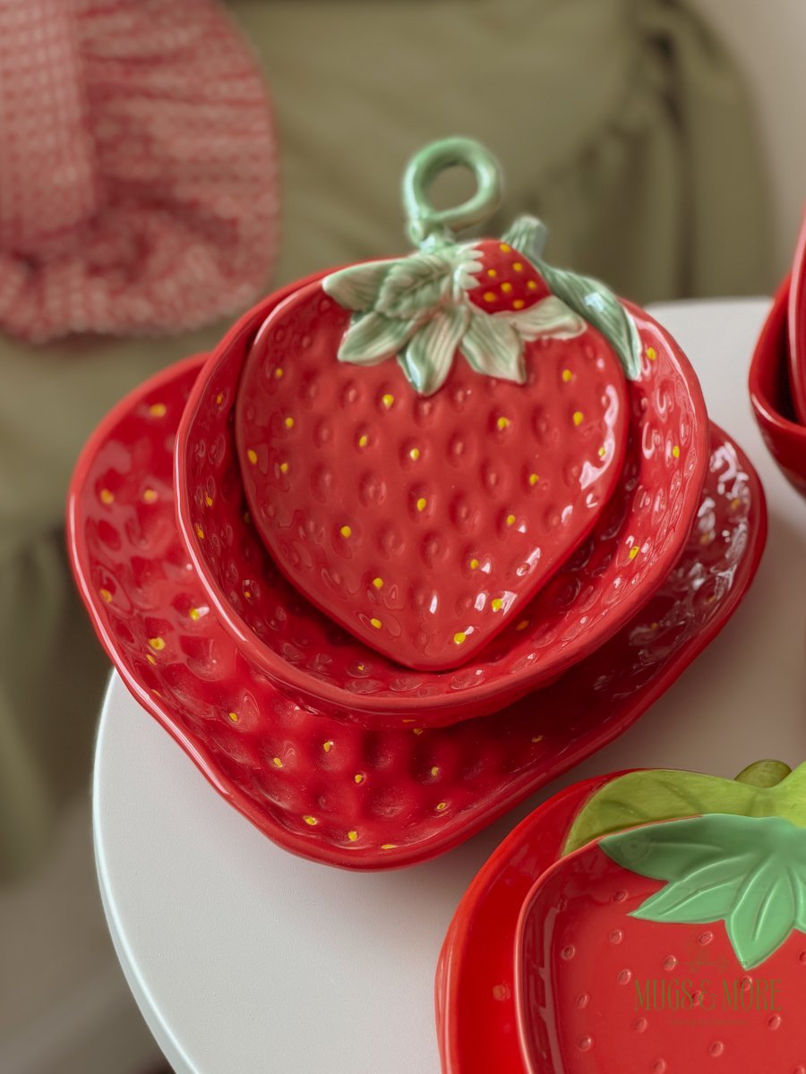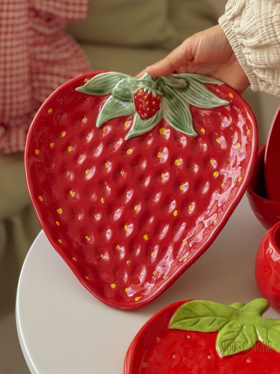 صحن فراولة تقديم حجم كبير باللون الأحمر