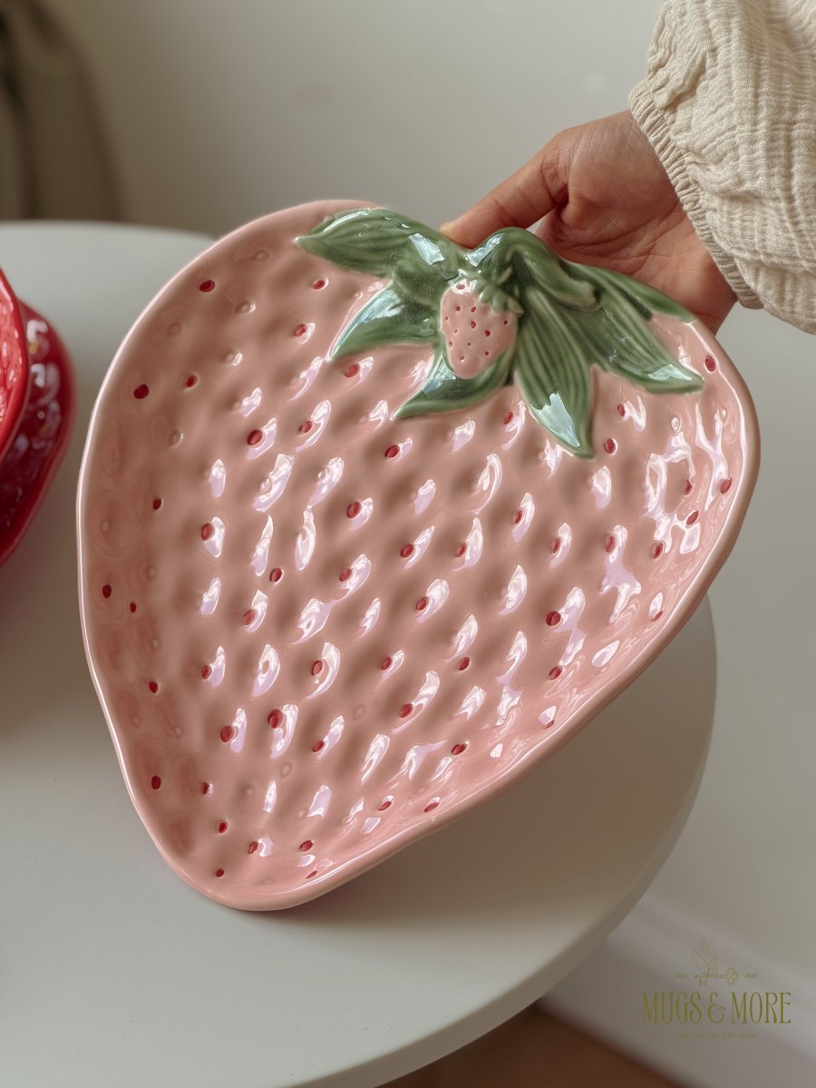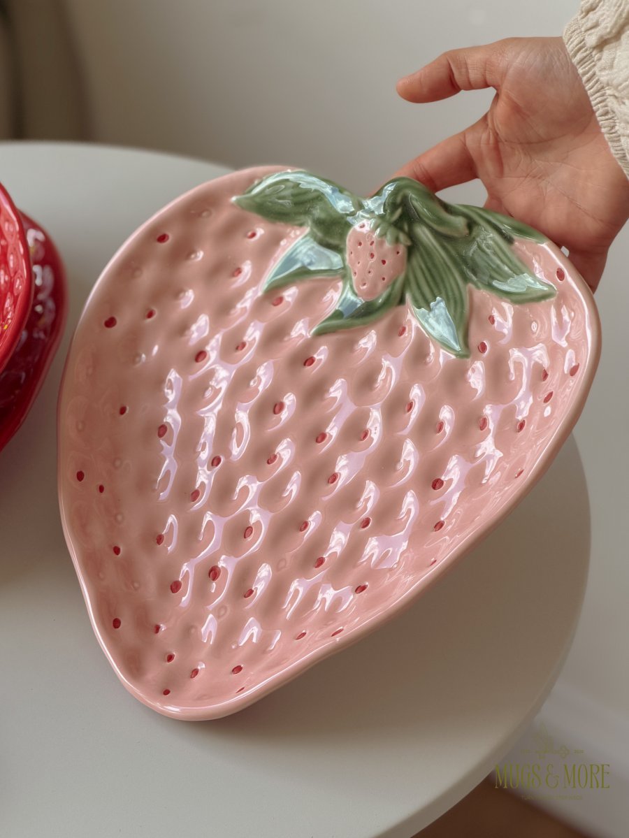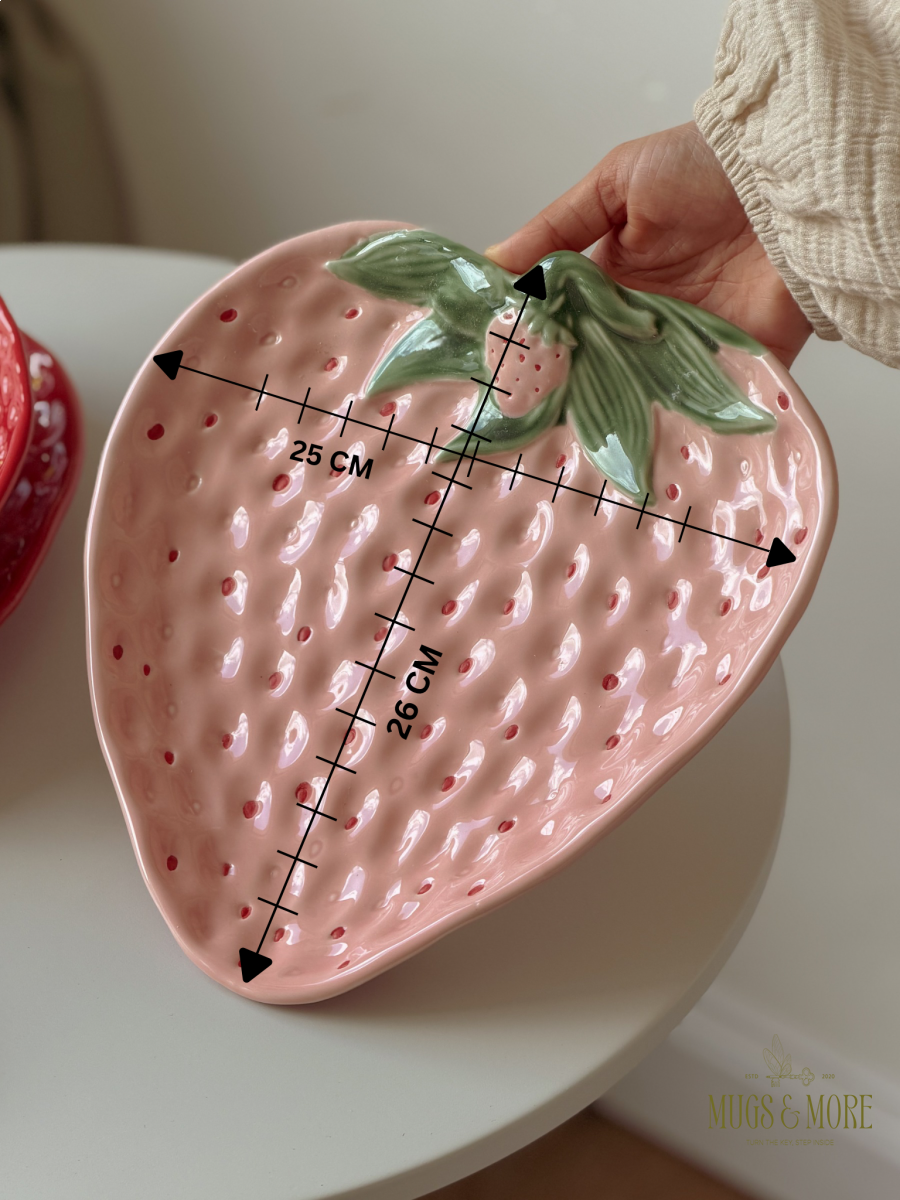 صحن تقديم مسطح بورسلان حجم كبير تصميم فراولة لون زهري
