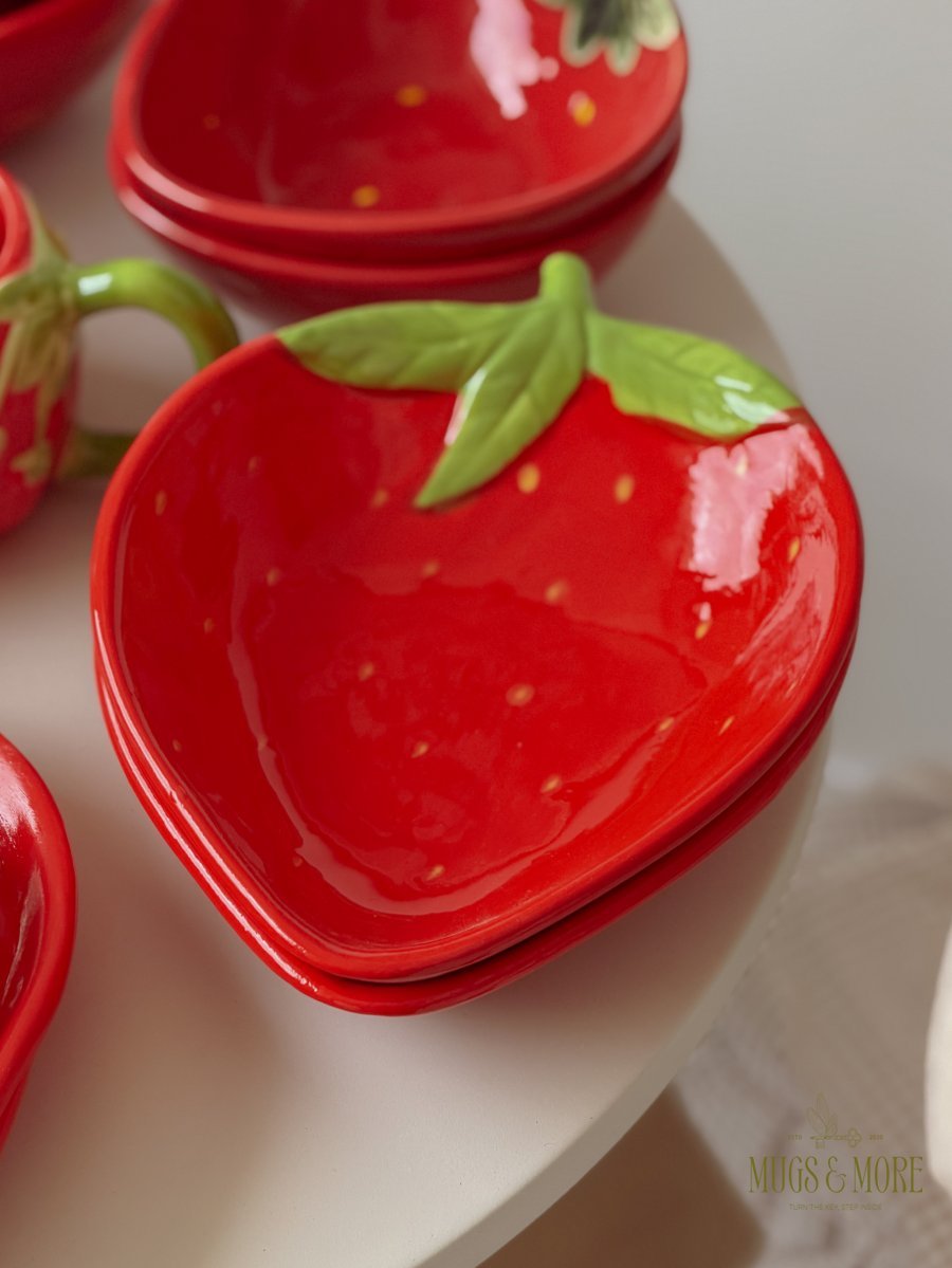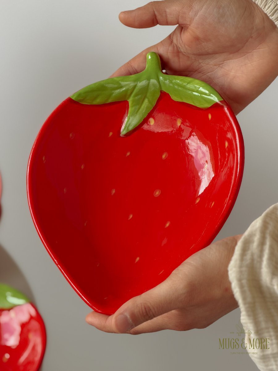صحن مجور سيراميك تصميم فراولة لون أحمر