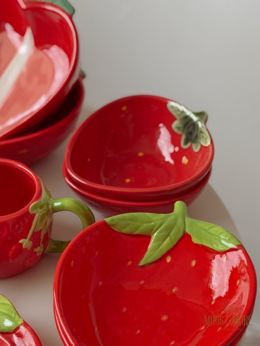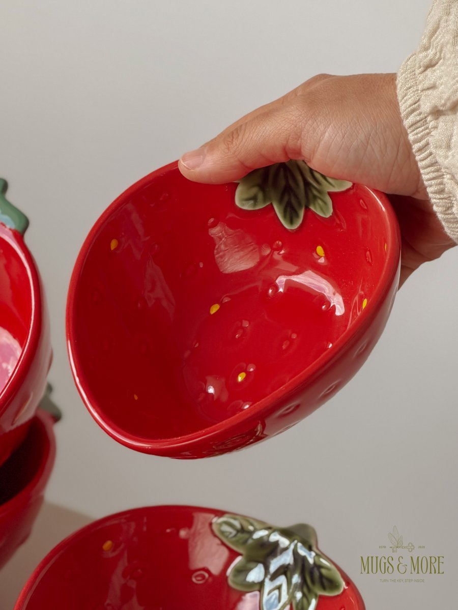 صحن مجور بورسلان تصميم فراولة لون أحمر