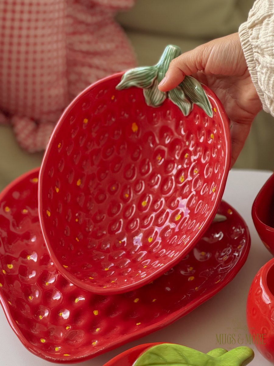 صحن تقديم مجور بورسلان حجم كبير تصميم فراولة لون أحمر