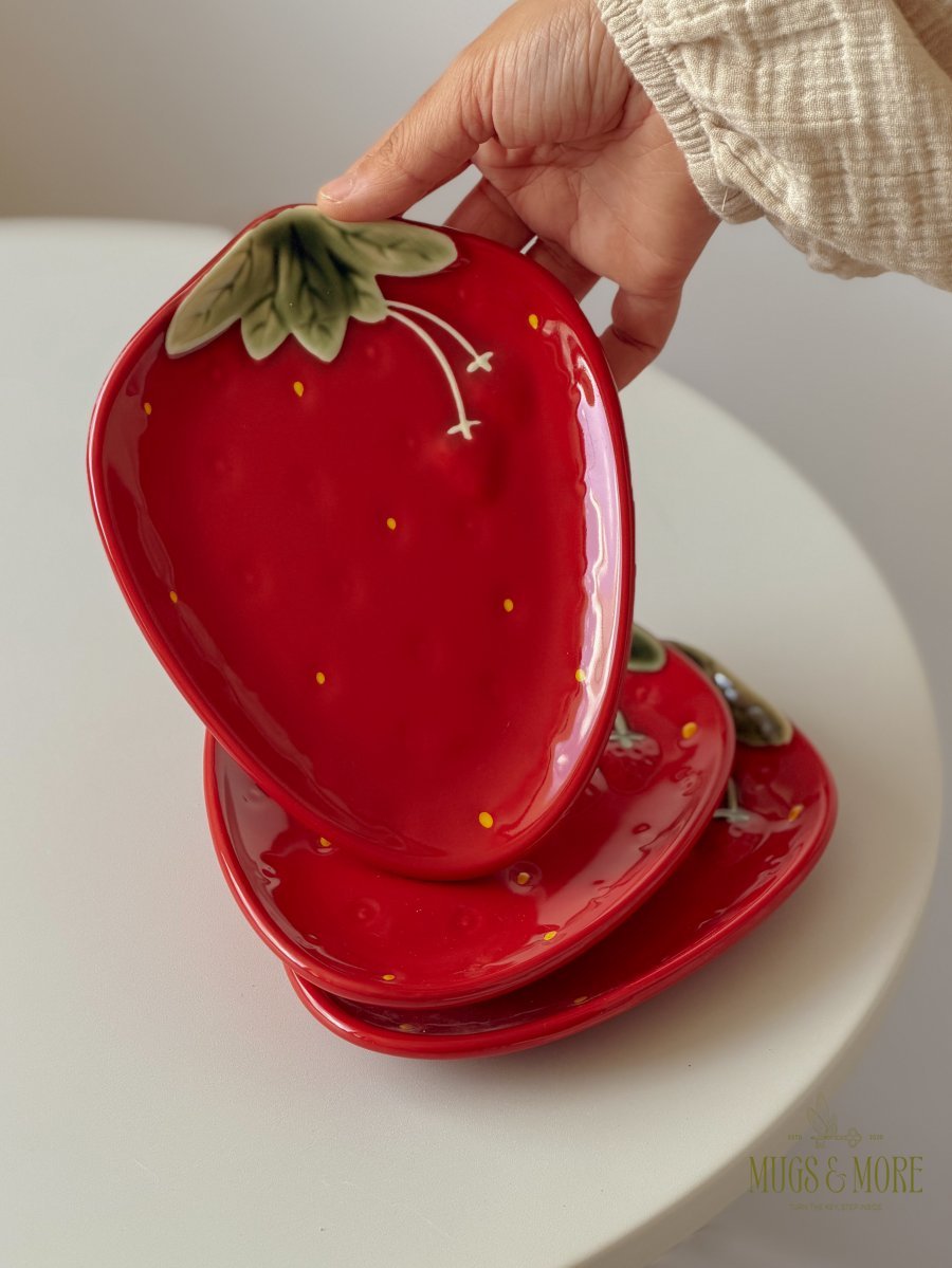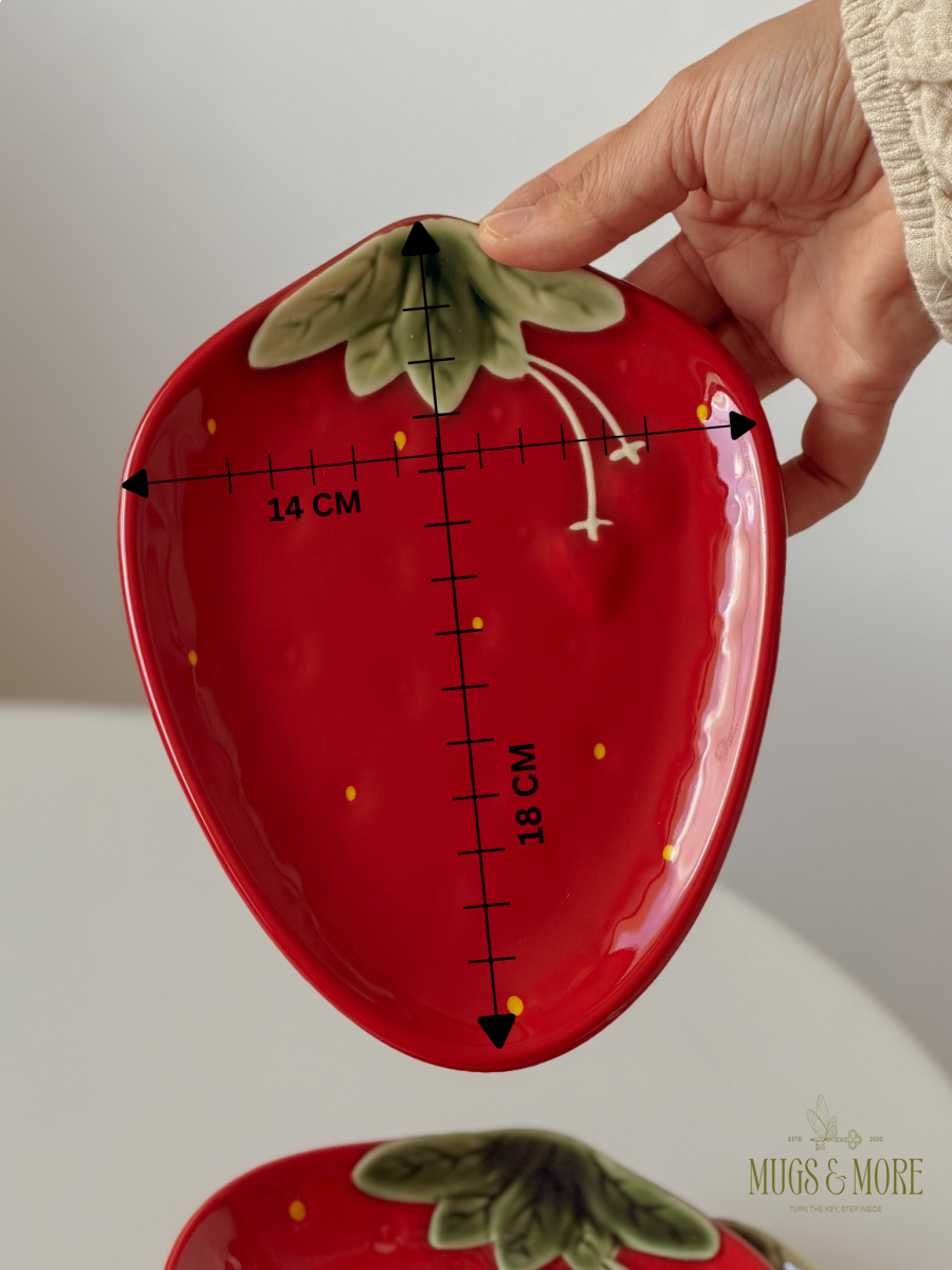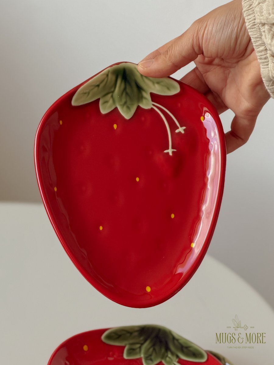 صحن تقديم مسطح بورسلان تصميم فراولة لون أحمر