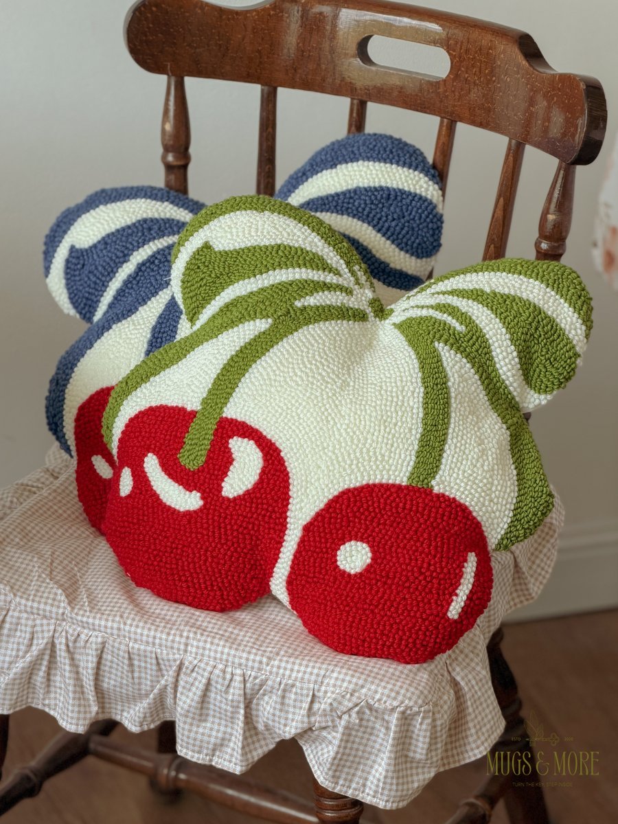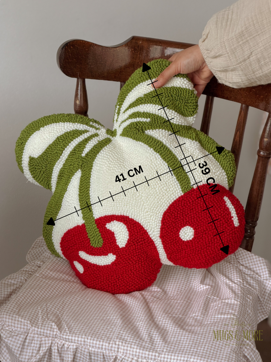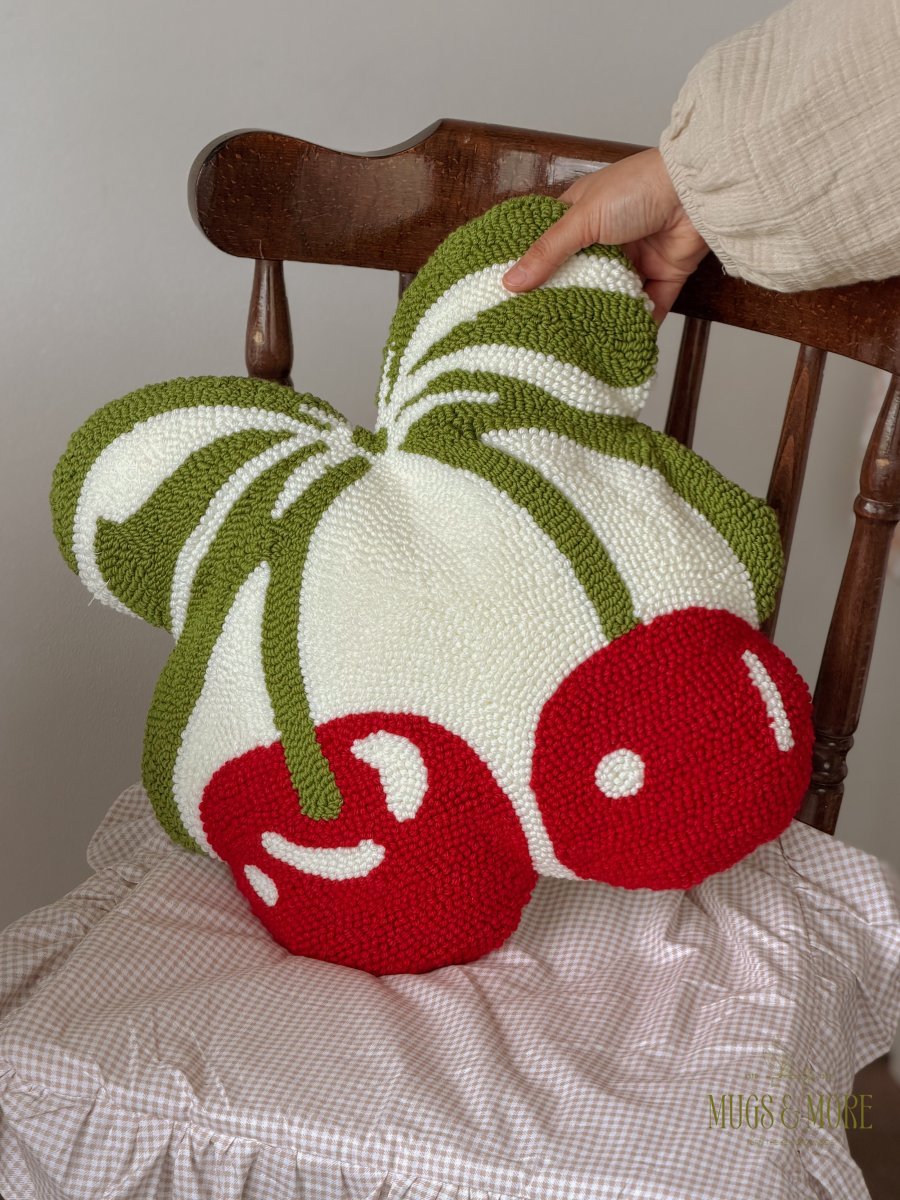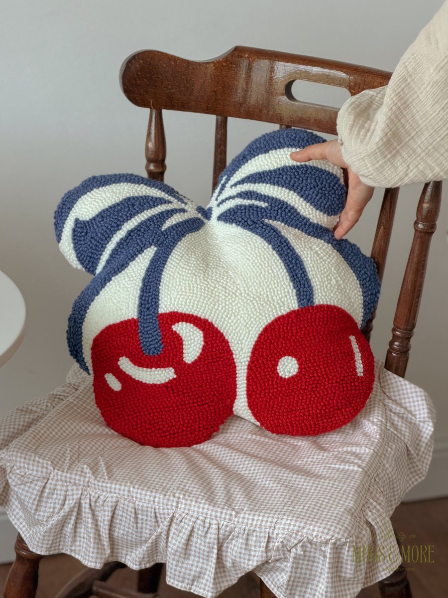 وسادة شكل كرز مشغولة يدوياً خيطان نافرة